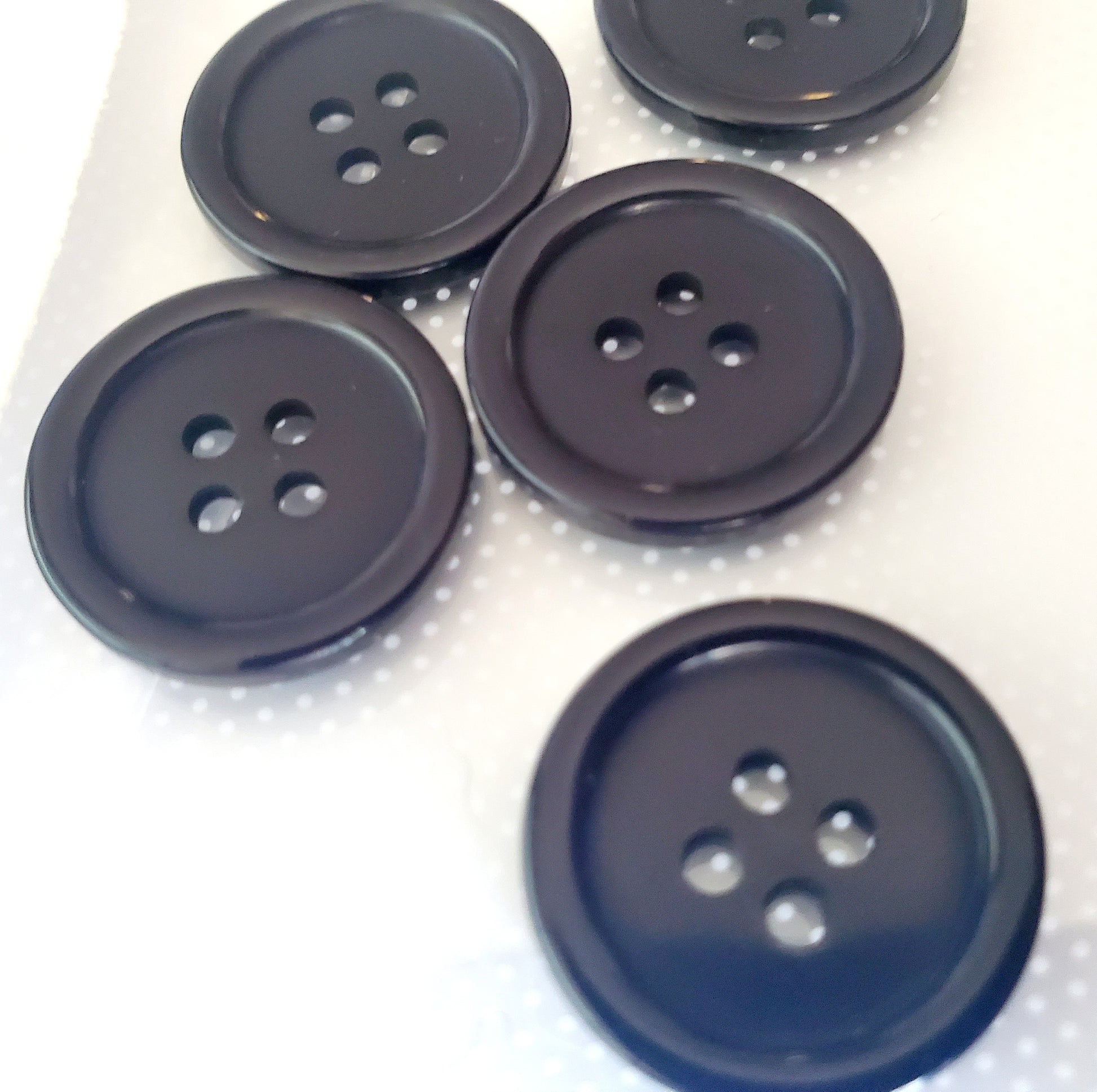 Black Round 4-Holed Buttons with Raised Edge, Size 20mm 2cm, Plastic QTY 5
