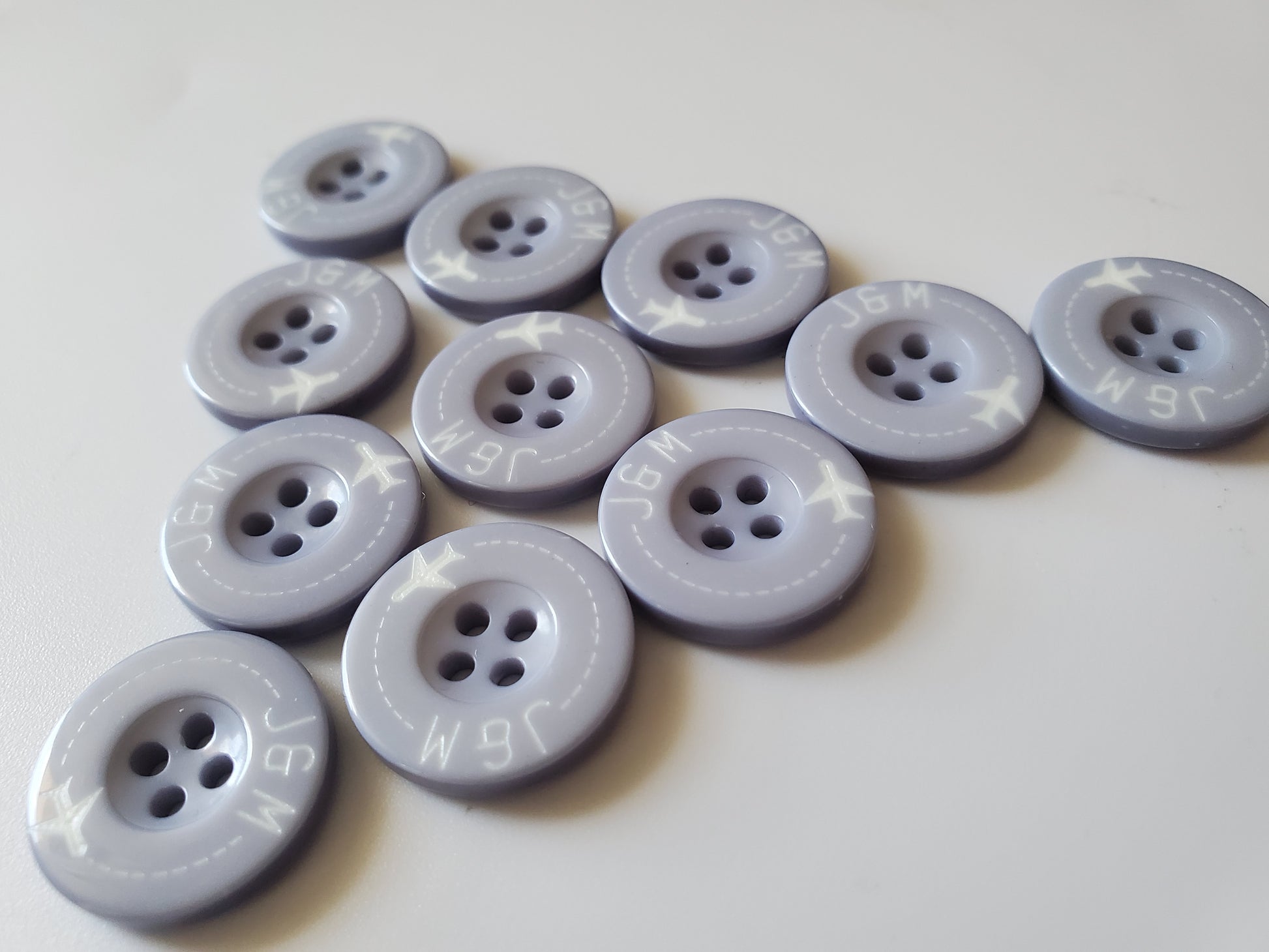 Blue Round Sewing Pattern, 4-Holed Buttons, Airplane Theme, Size 20mm, 2cm, Plastic QTY 11