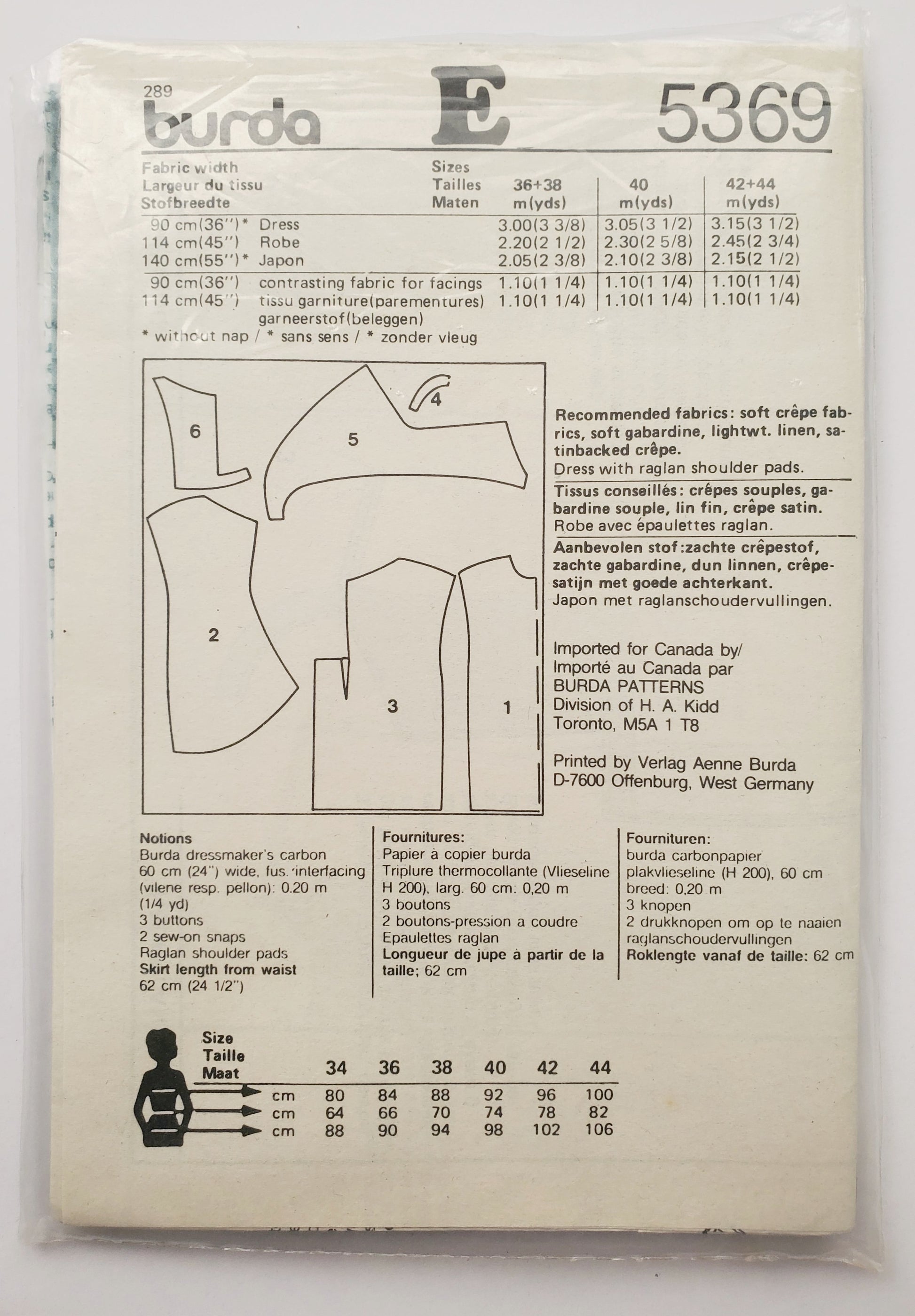 BURDA COLLECTION SPECIAL, Sewing Pattern 5369, Dress with Deep Back V-Neck, Size 10-22