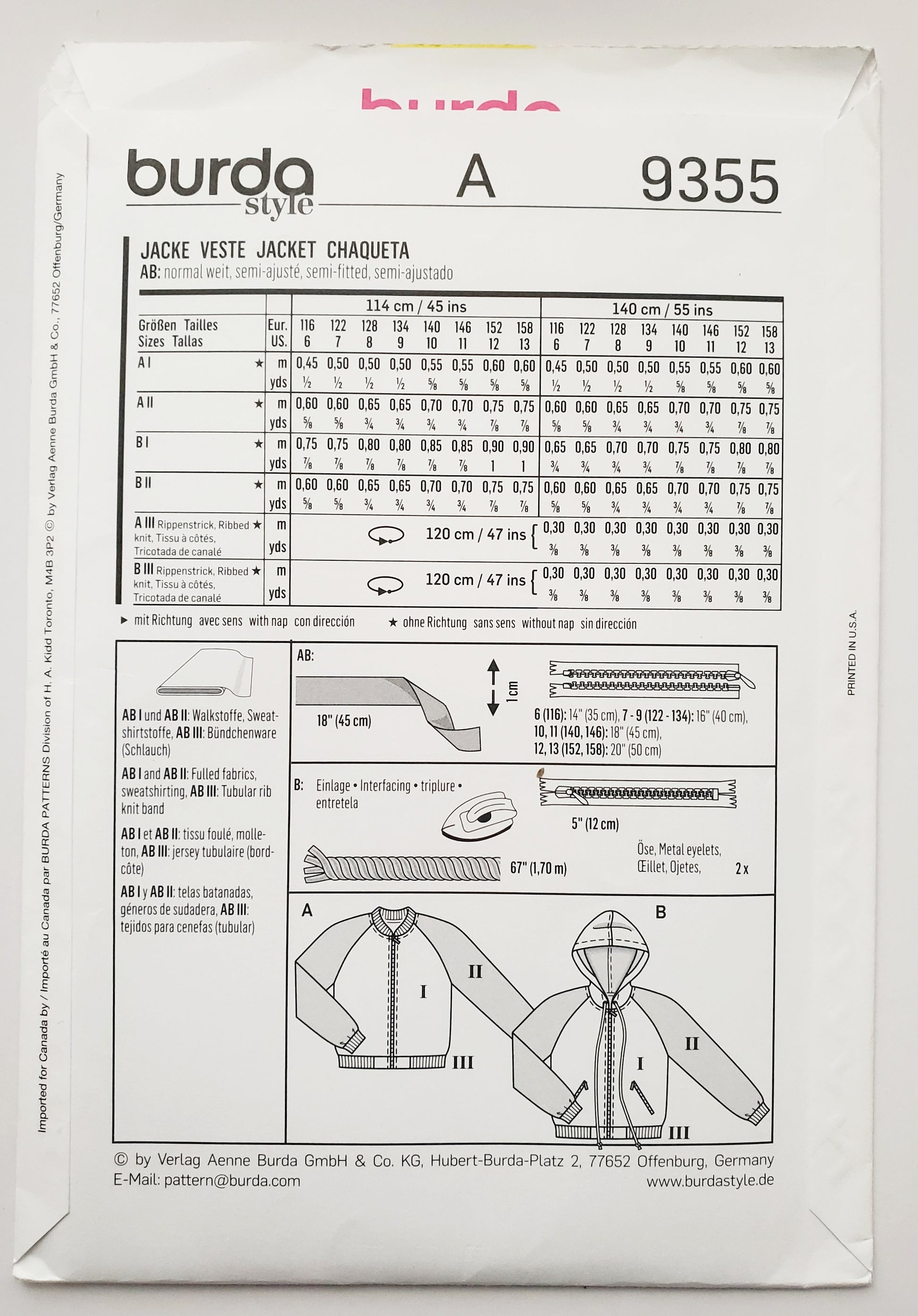 BURDA KIDS, Sewing Pattern 9355, Jackets, Bomber Jacket Style, Kids, Size 6-13