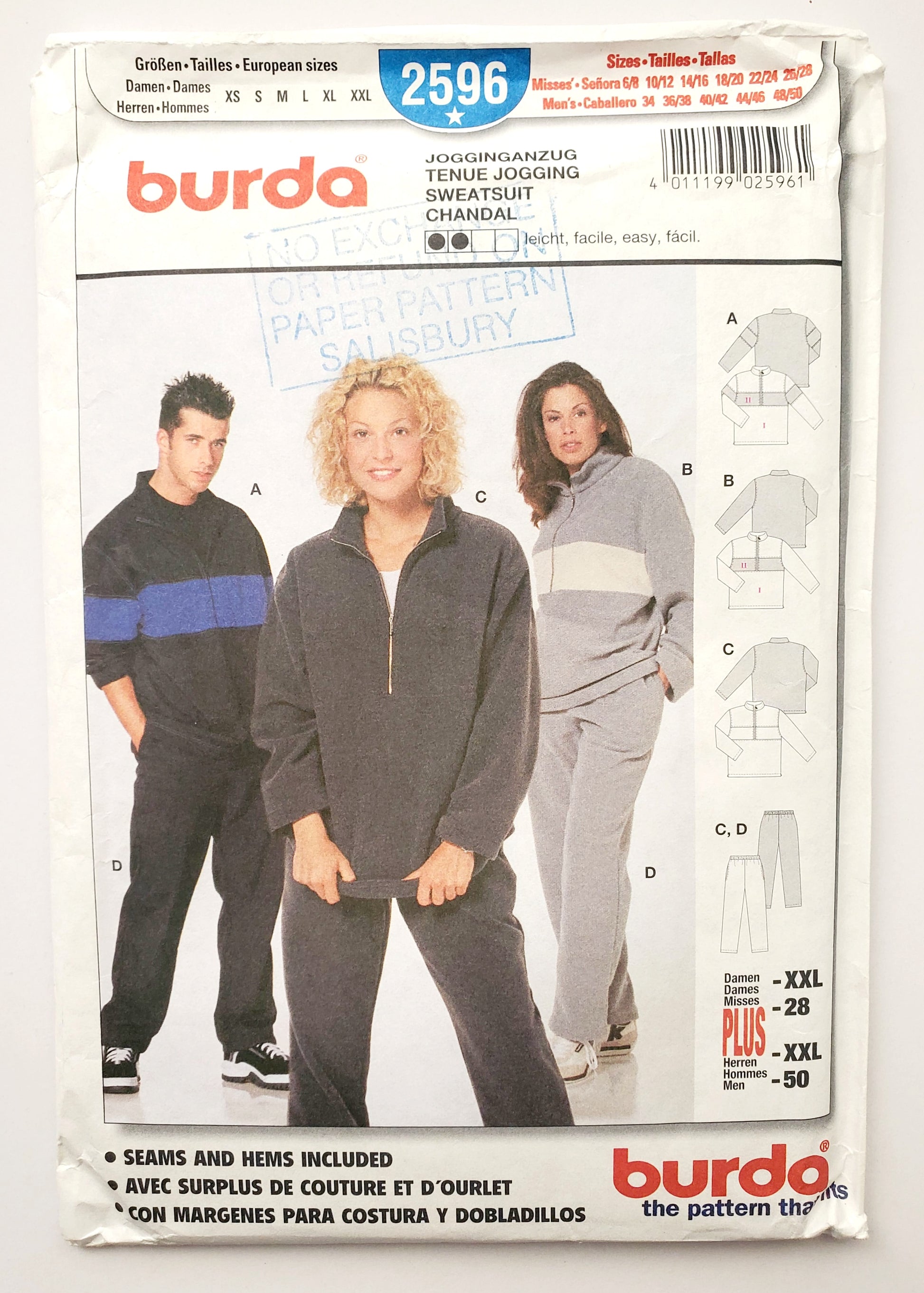 BURDA, Sewing Pattern 2596, Jogging Outfit, Sports, Pants, Jumpers, Sweaters, Woman, Size 6-28, Men's, 34-50