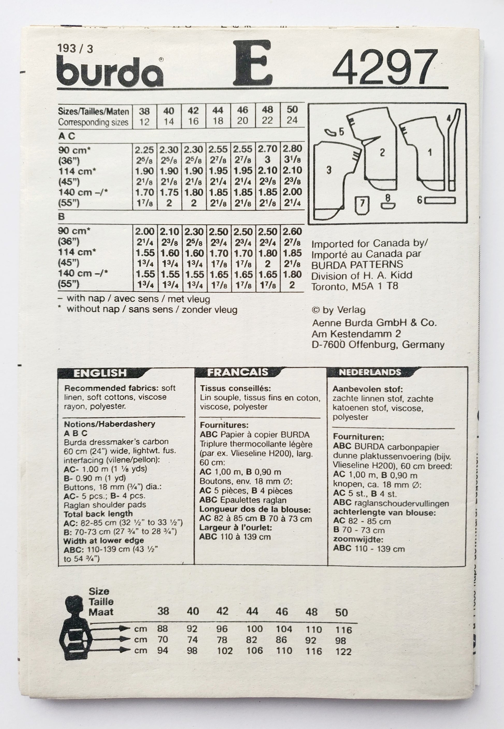 BURDA SUPER EASY, Sewing Pattern 4297, Shirts, Tops, Shirt with Curved Hem, Size 12-24