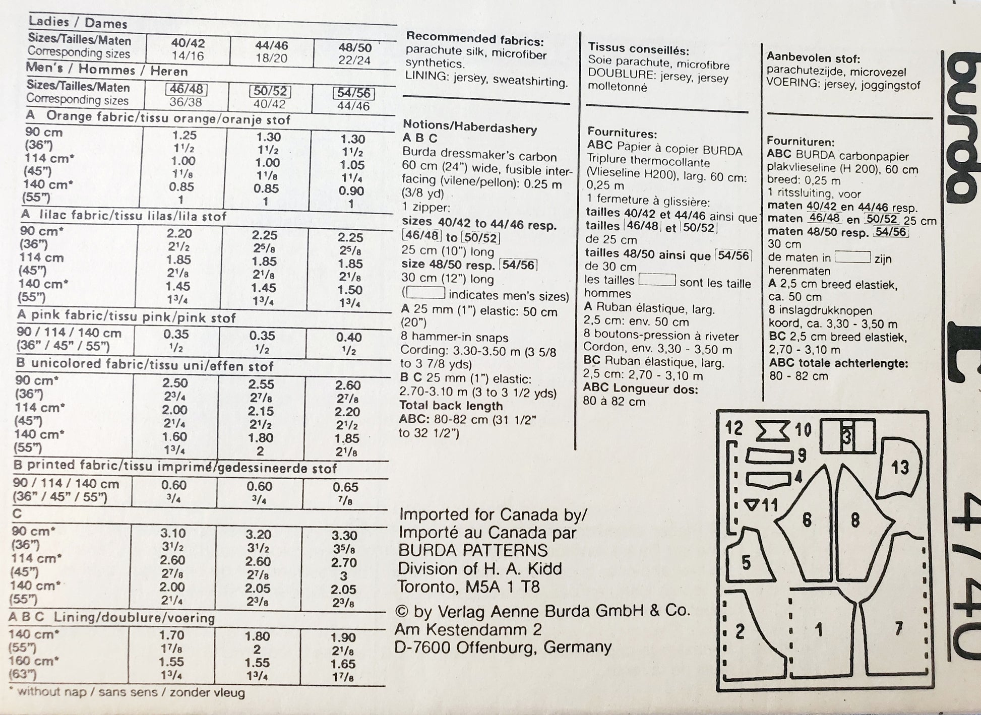 BURDA, Sewing Pattern 4740, Jacket with Parachute Fabric and Lining, Size 14-24