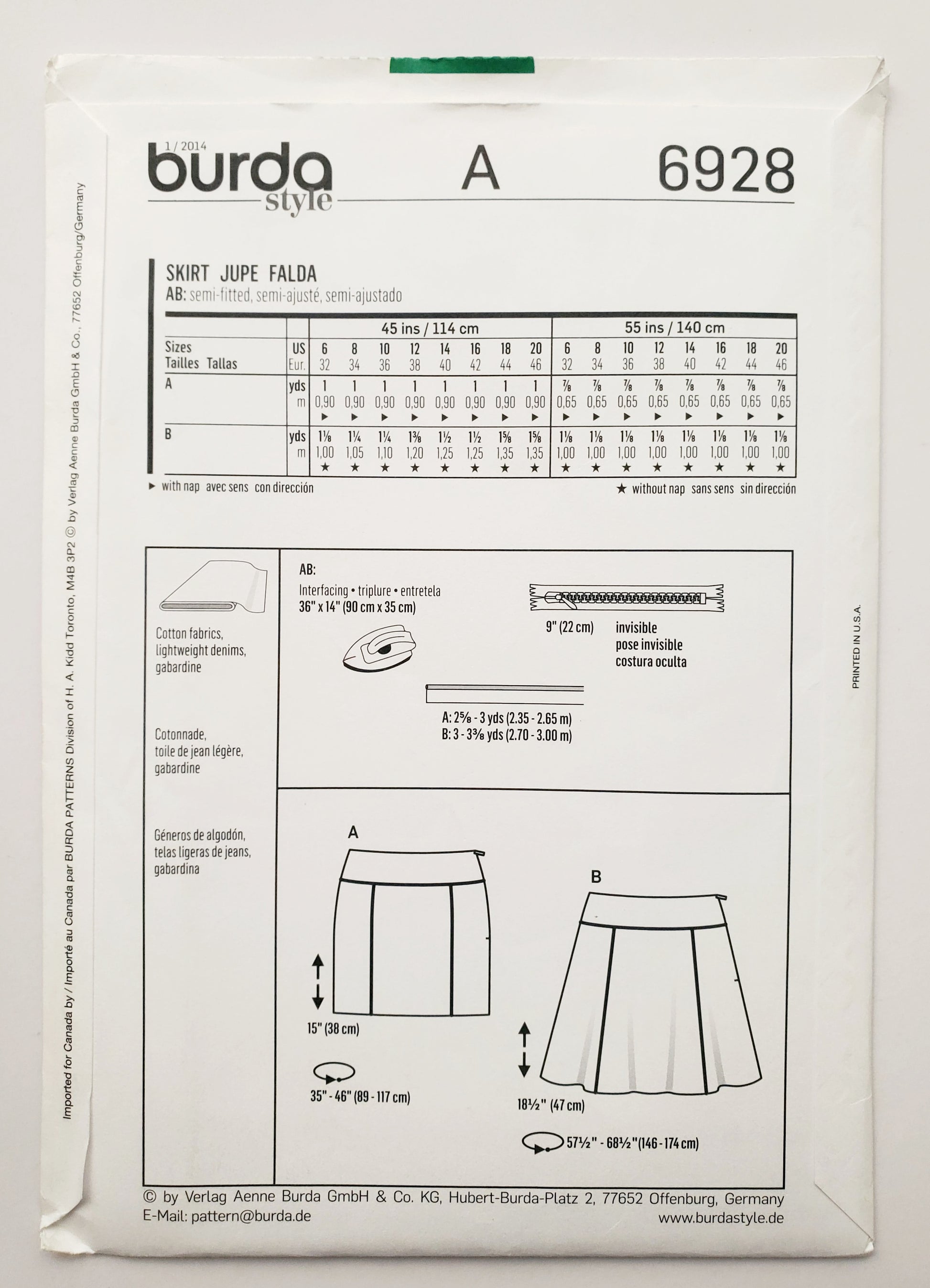BURDA YOUNG, Sewing Pattern 6928, Short Skirt, Short Flared Skirt, Size 6-20