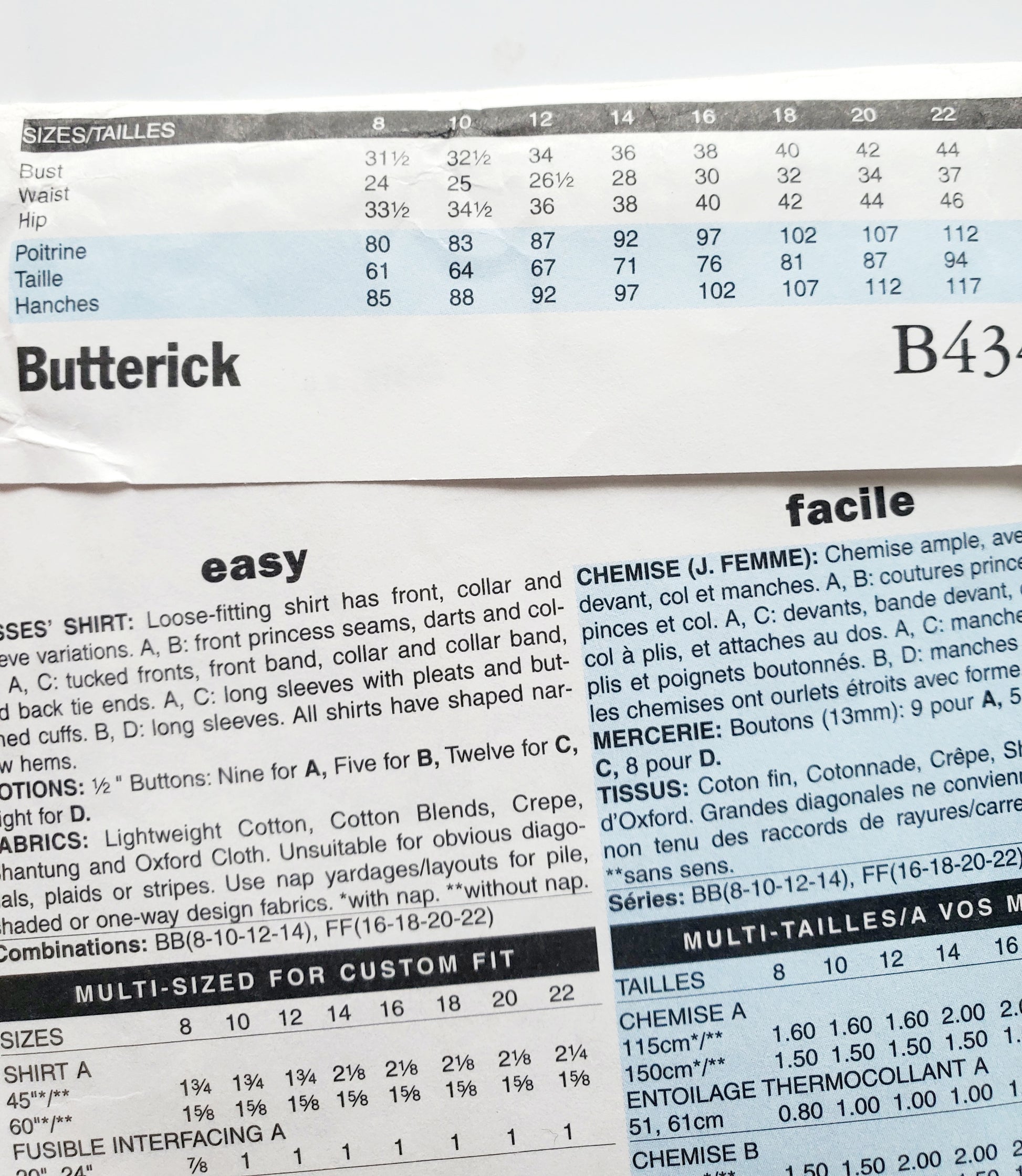 BUTTERICK Sewing Pattern B4345, Shirt, Loose-Fitting, Shaped Hemline, Size 16-22