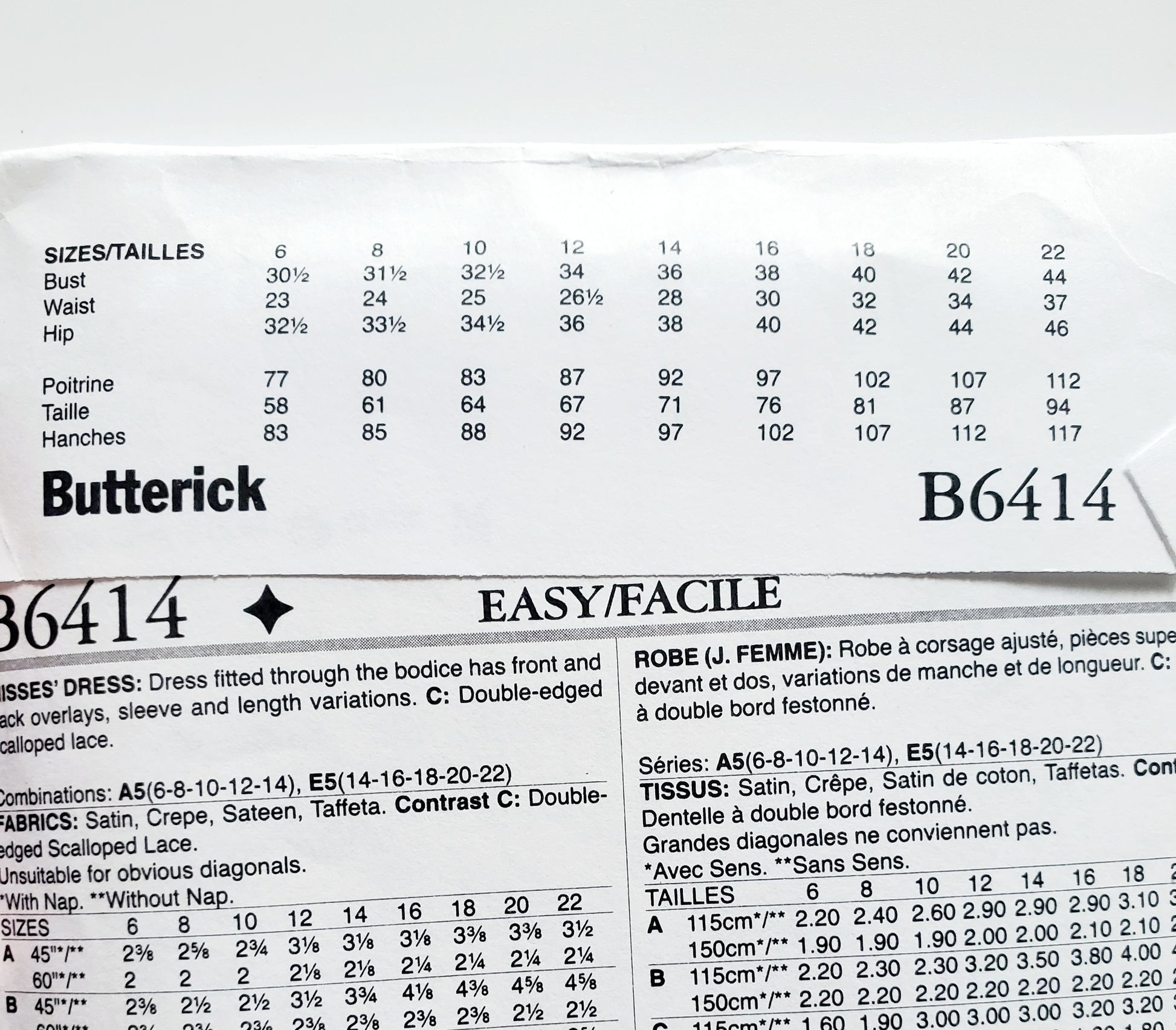 BUTTERICK Sewing Pattern B6414, Dress, Overlays, Scalloped Lace, Size 14-22