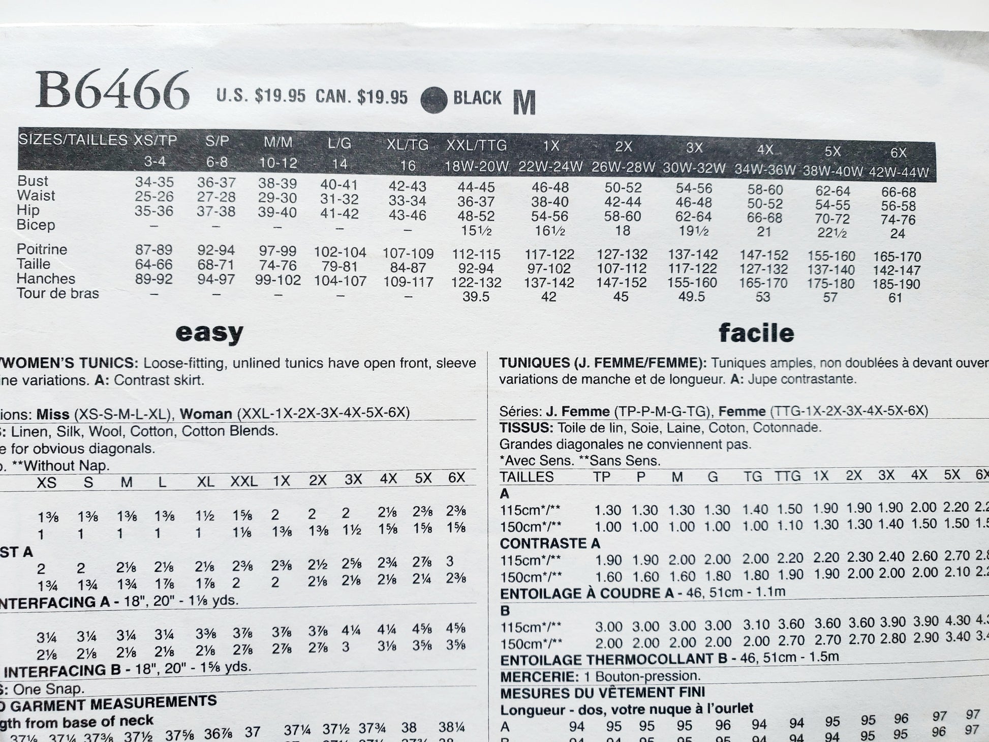 BUTTERICK Sewing Pattern B6466, Tunics, Tops, Size 3-16