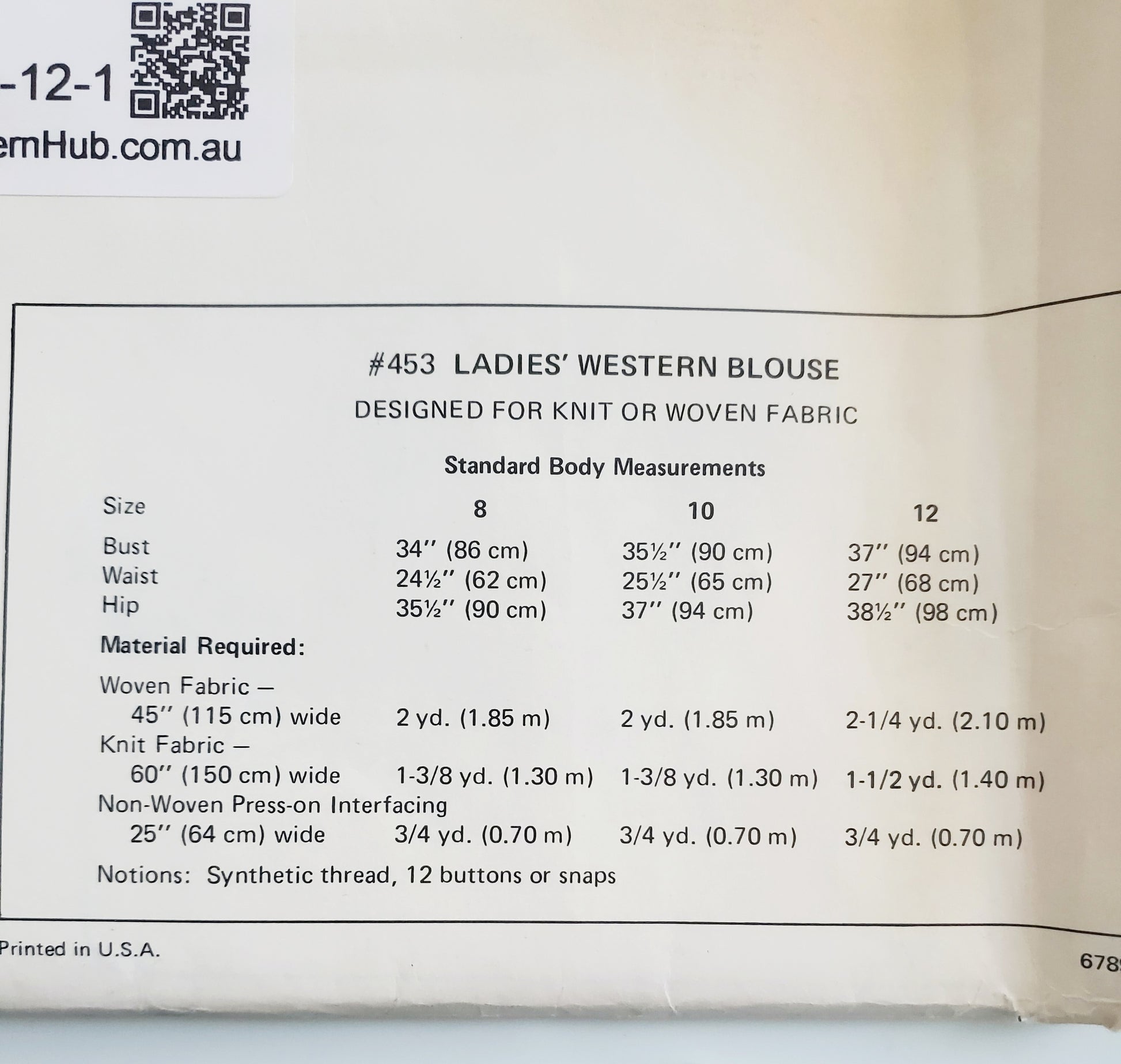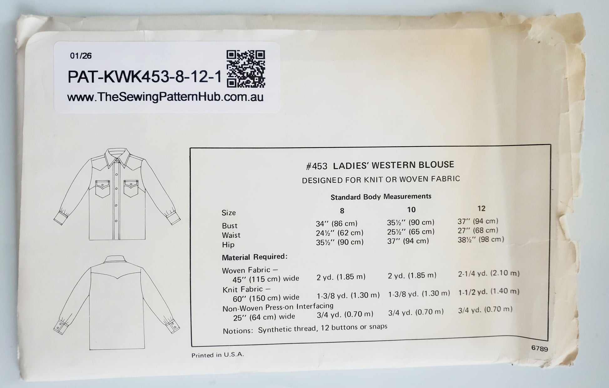 KWIK SEW Sewing Pattern 453, Vintage, Collectable, Western Blouse, Shirt, Size 8-12