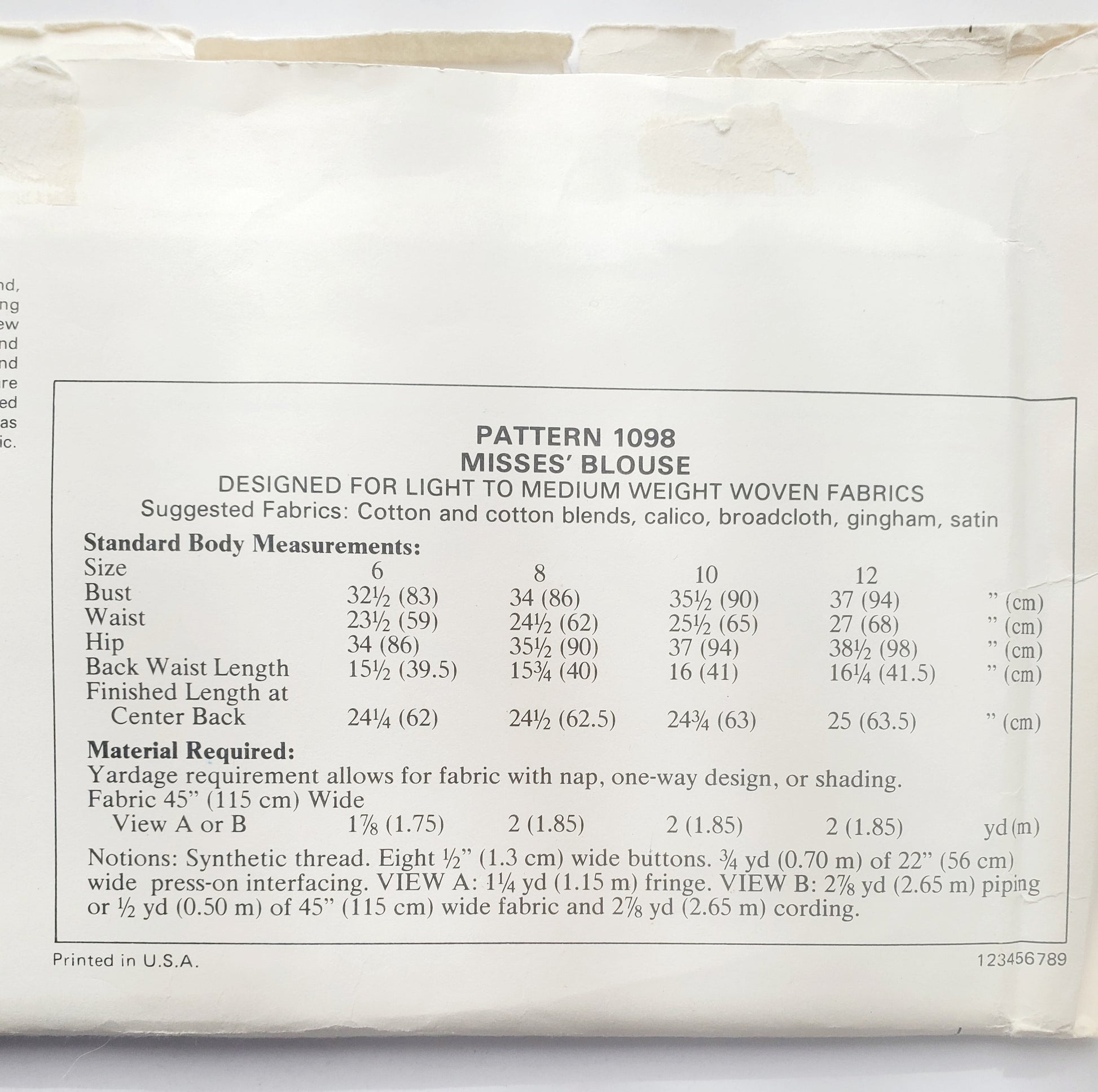 Suggested Fabrics: Cotton and cotton blends, calico, broadcloth, gingham, satin"