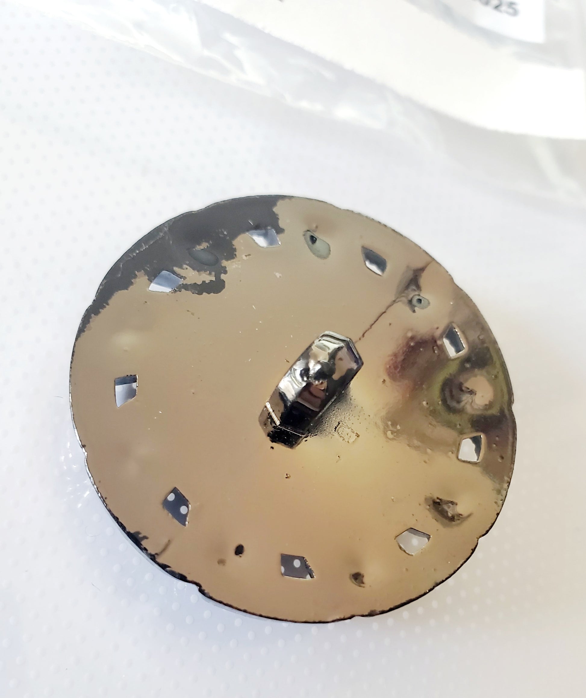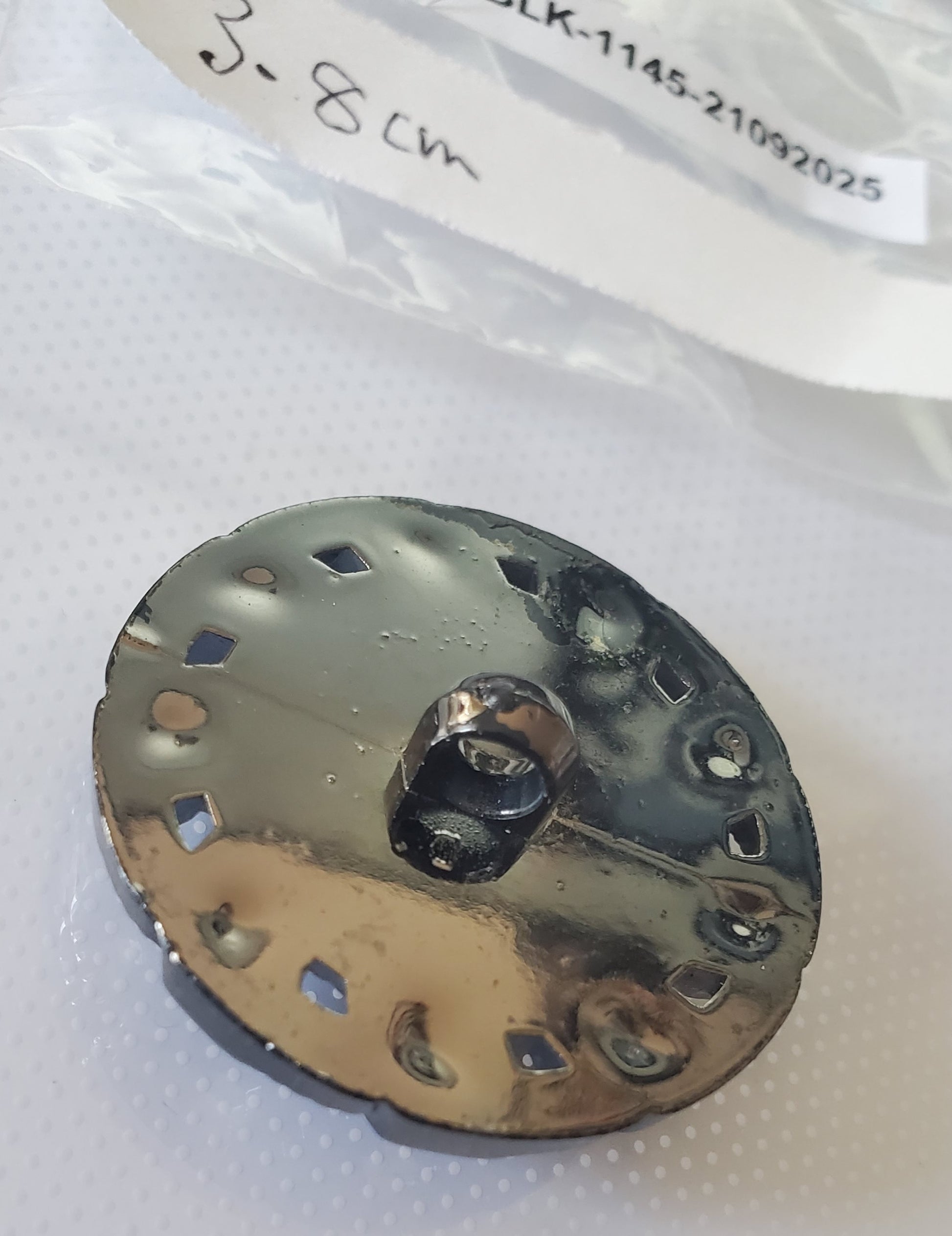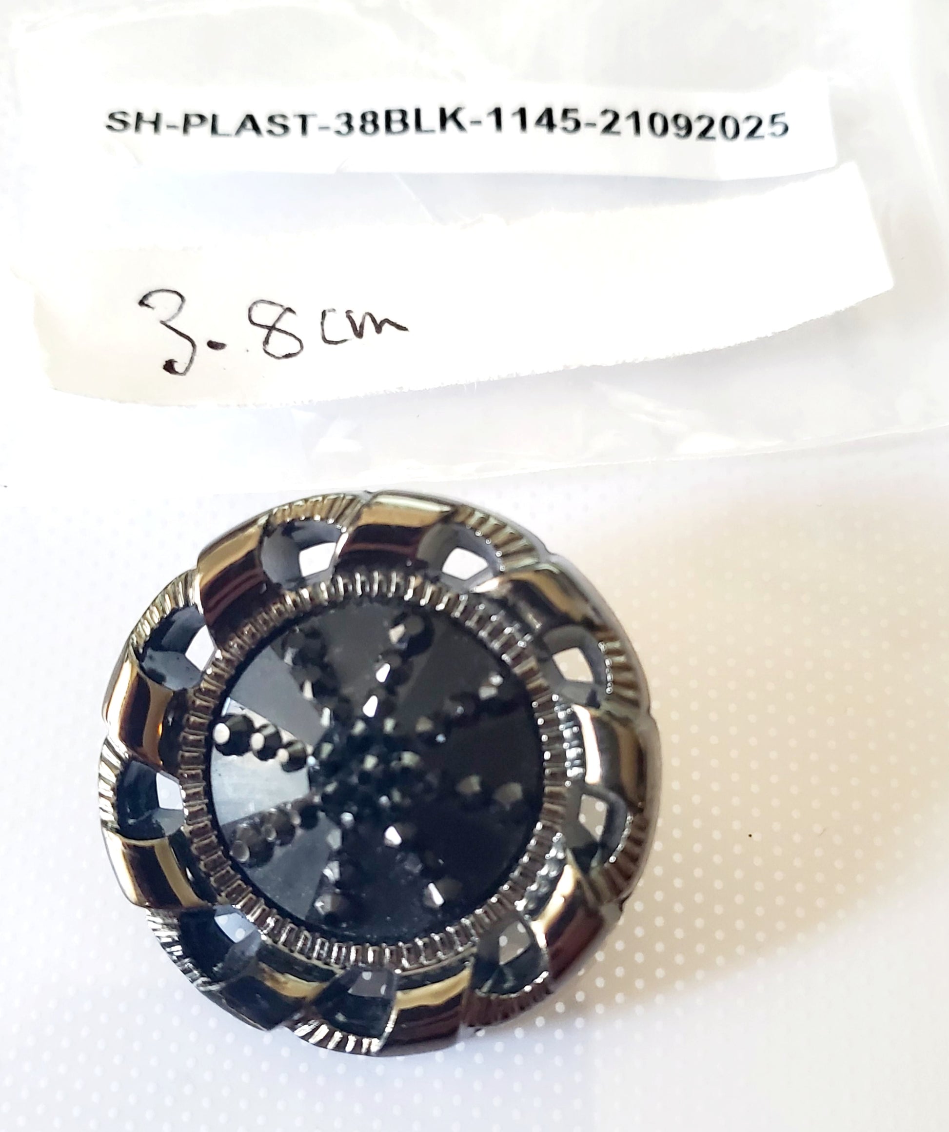 One Large Plastic Decorative Detailed Shank Buttons, Black with Faux Metal Border, Round, Size 38mm 3.8cm QTY 1