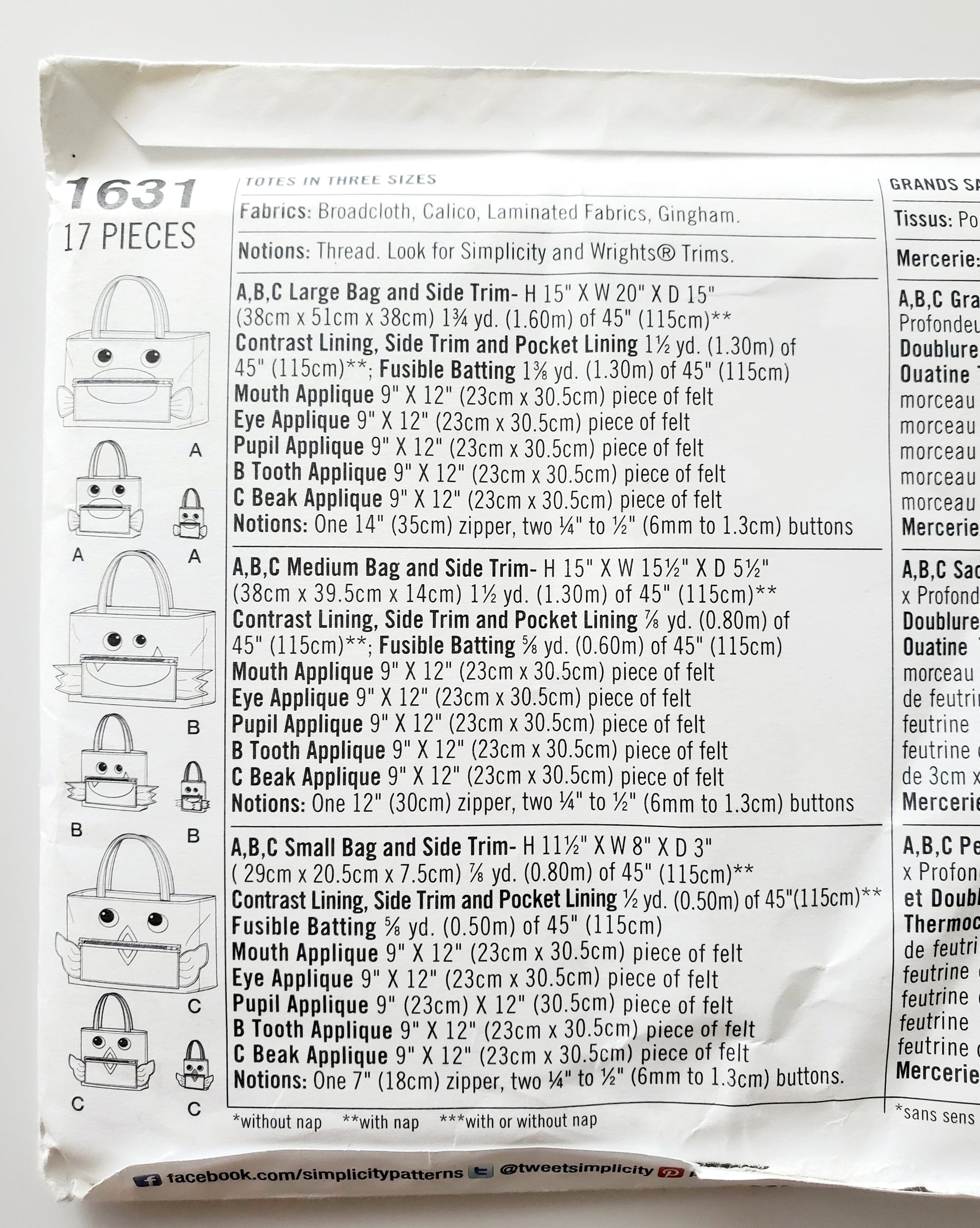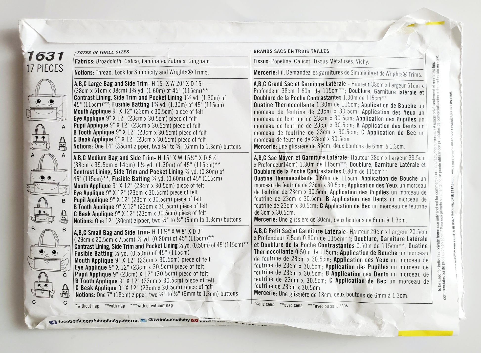 SIMPLICITY Sewing Pattern 1631, Bag, Craft, Kids, Swimming BagsFabrics and Notions: