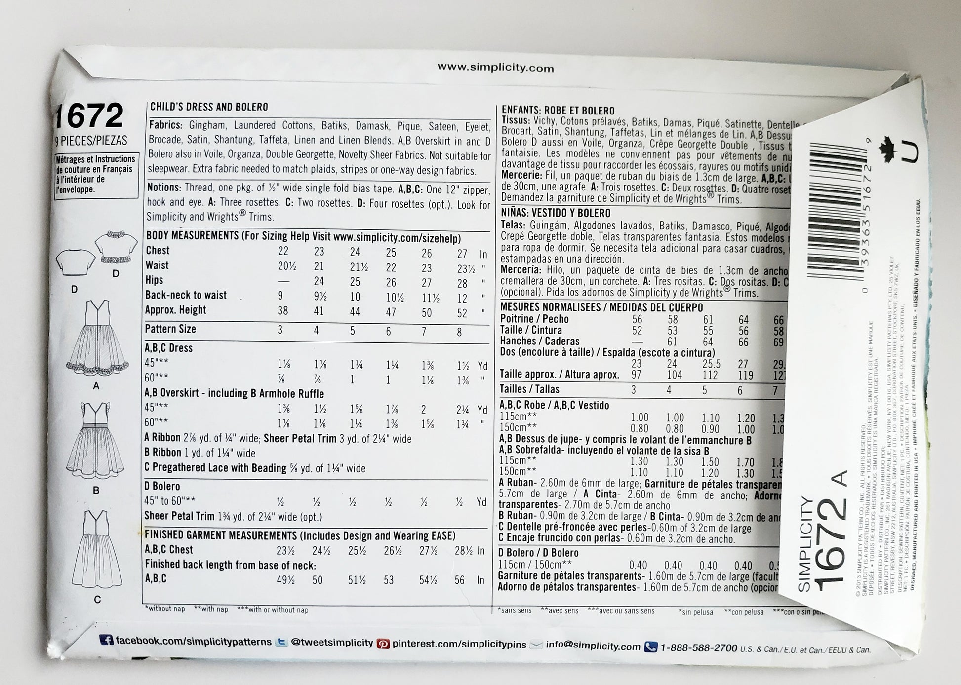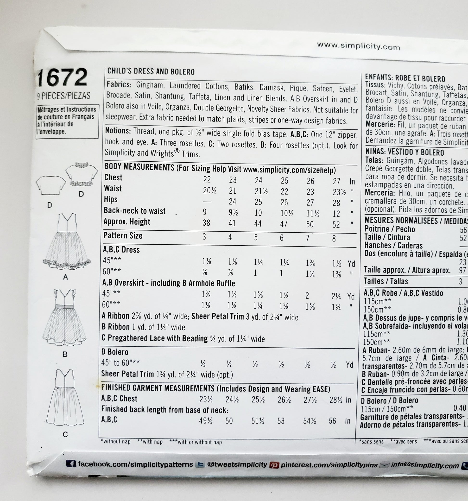 | Brand | Simplicity 1672 |
