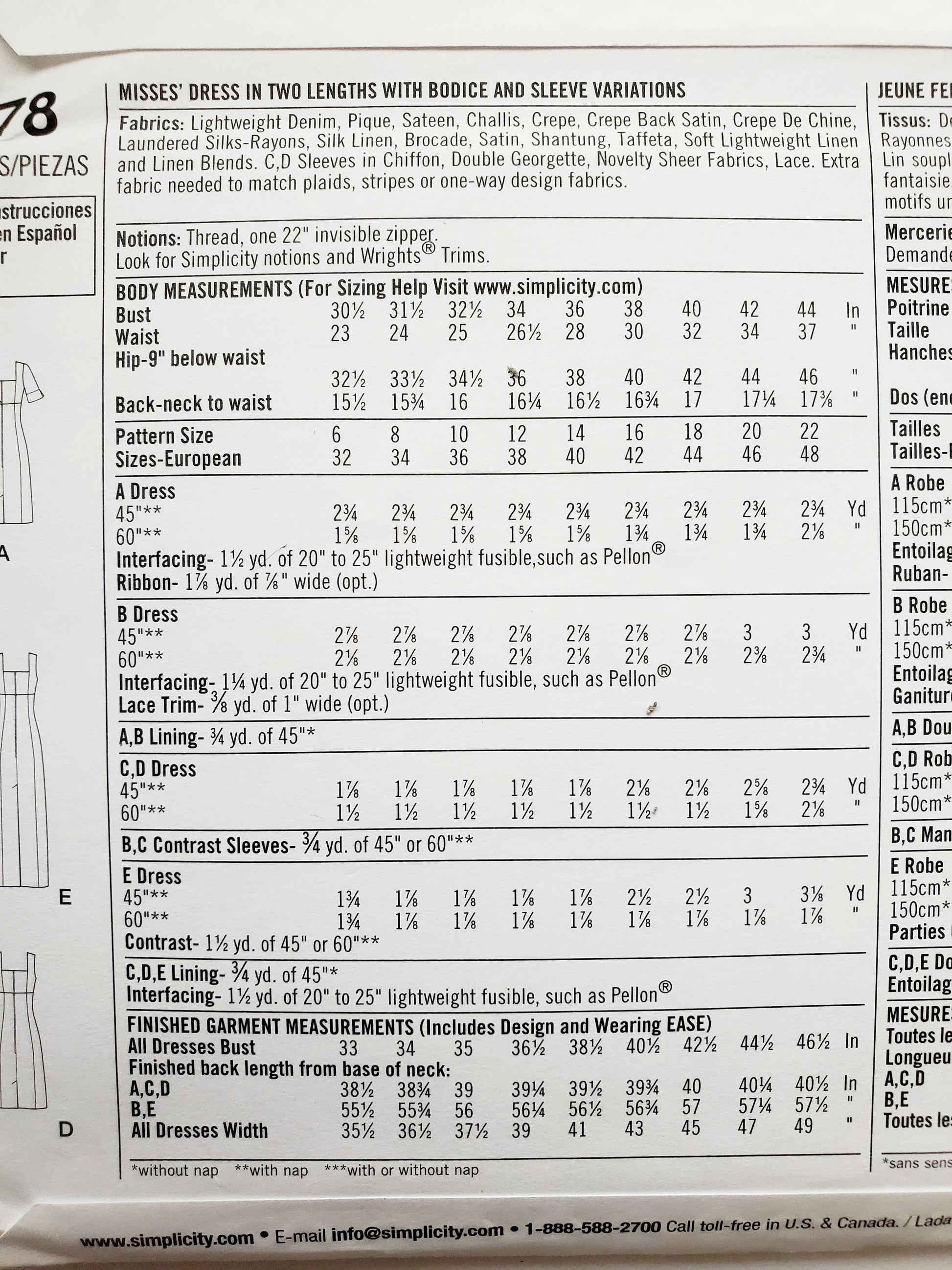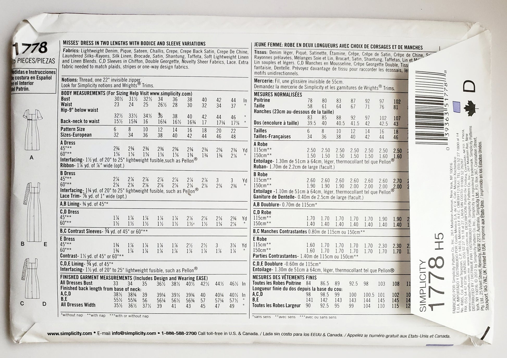 | Brand | Simplicity 1778 |
