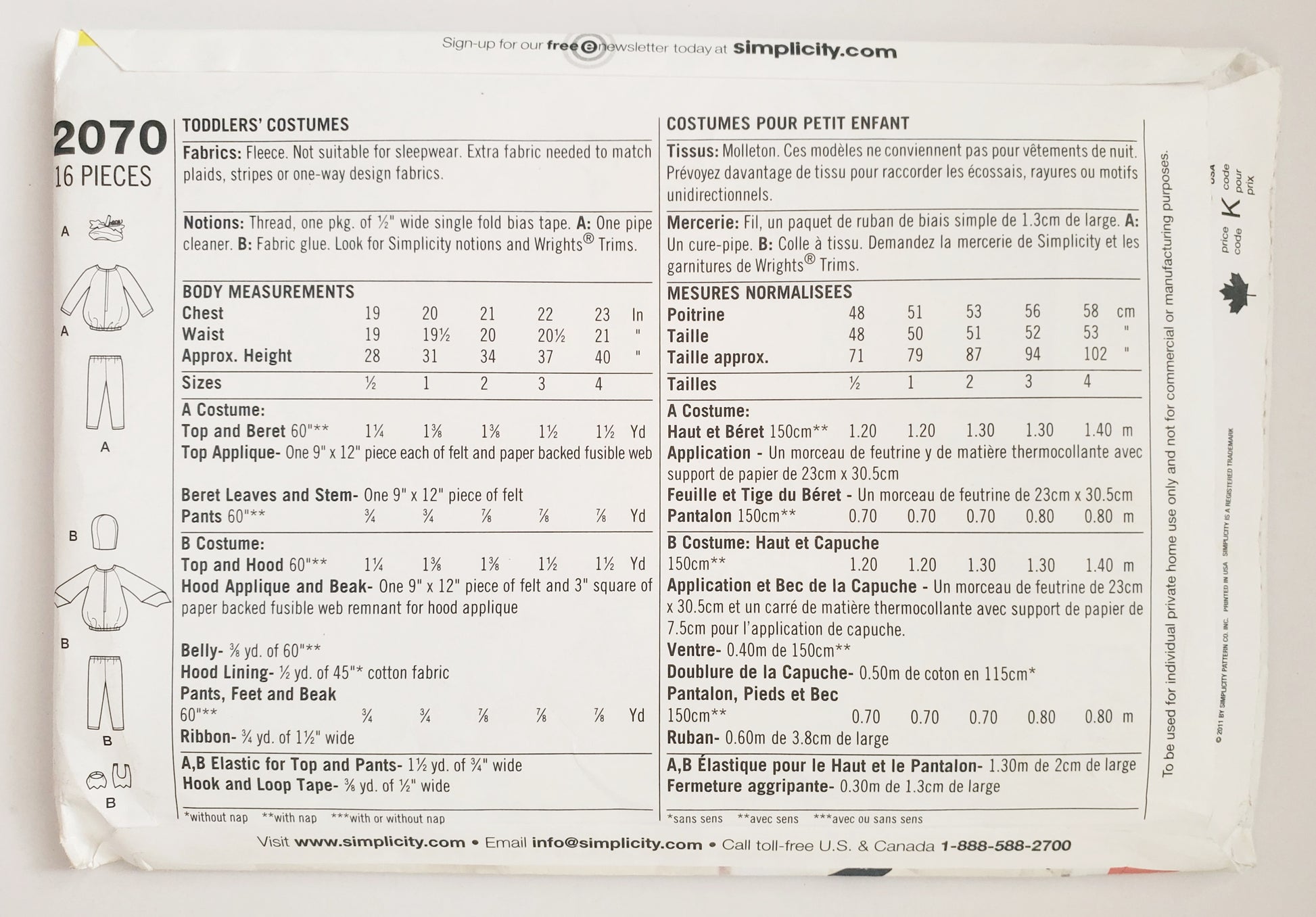 Simplicity Learn to Sew Toddler's Penguin & Jack O'Lantern Costume Patterns. Learn to sew with basic skills. Use fleece, felt applique and apply.
