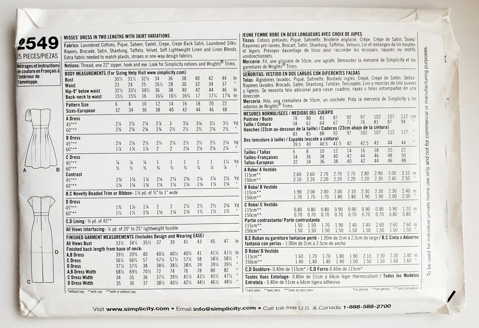 SIMPLICITY Sewing Pattern 2549, Designer Dress, Evening and Day Dress, Size 14-22