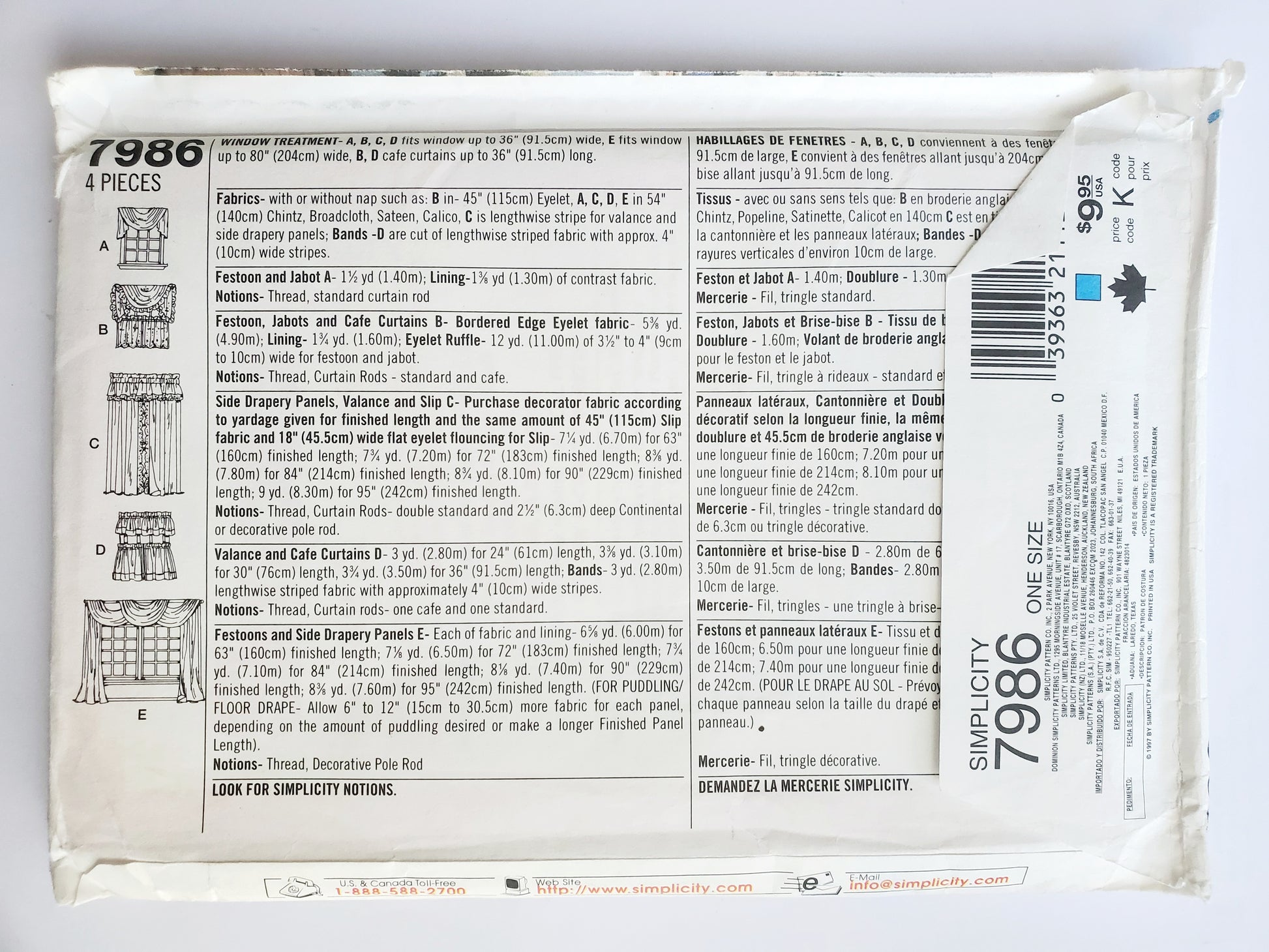 SIMPLICITY Sewing Pattern 7986 Home Decorating, Festoon, Jabot, Cafe Curtains, Valance