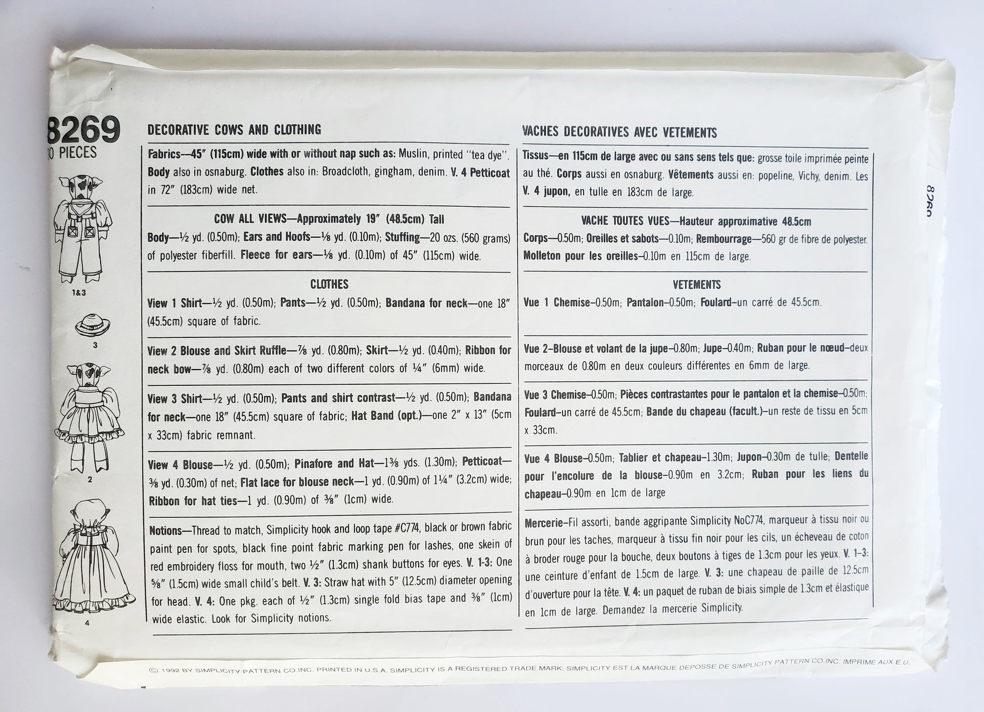 SIMPLICITY Sewing Pattern 8269, Crafts, Faith Van Zanten, Toy Cows and Clothing, Farm Animal, Stuffed Toy