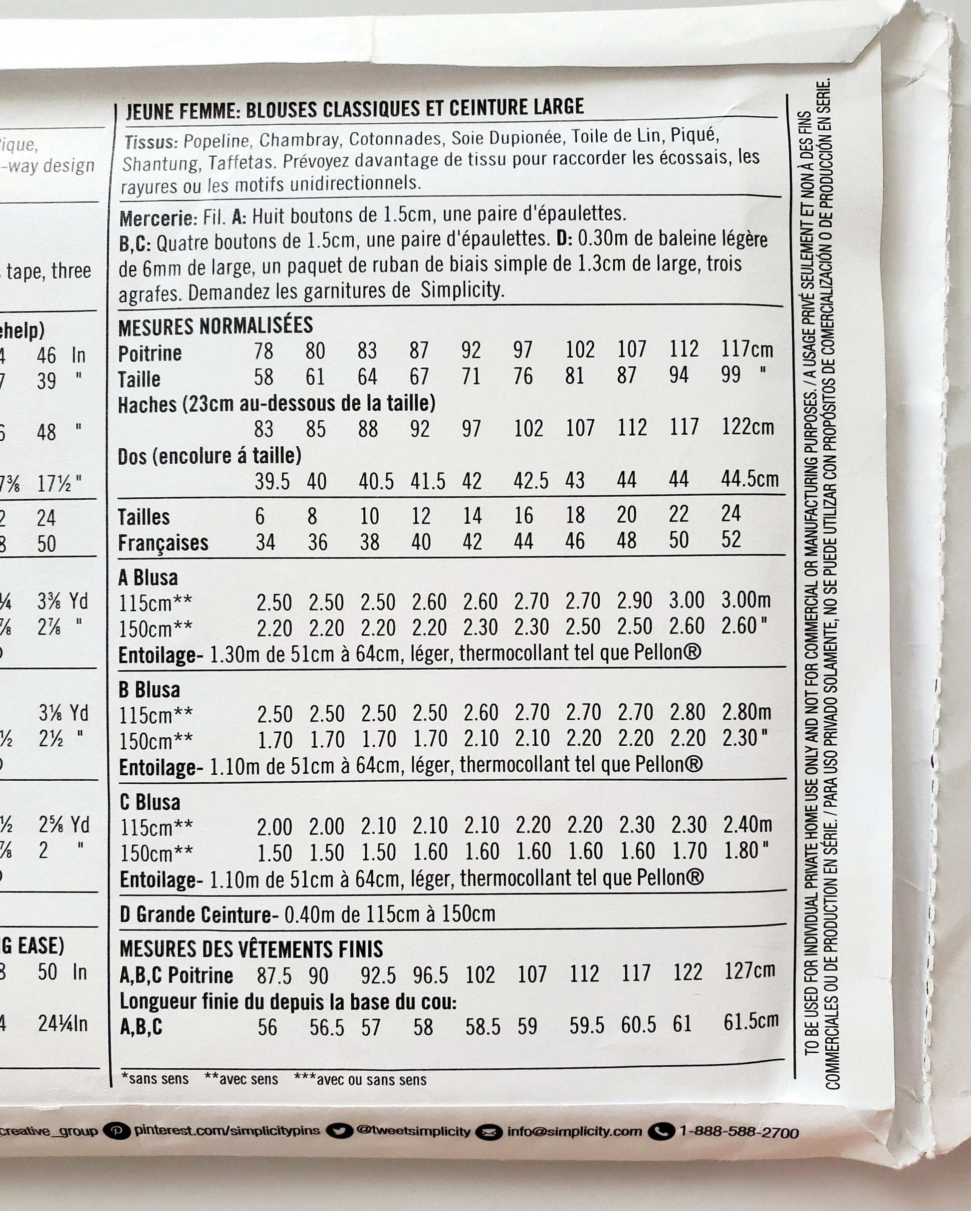 Notions: Thread. A: Eight 5/8" buttons, one pair of shoulder pads. B.C: Four 5/8" buttons, one pair of shoulder pads. D: 3/8 yd. of 1/4" wide featherweight boning with casing, one pkg. of 1⁄2" wide single fold bias tape, three hook closures.
