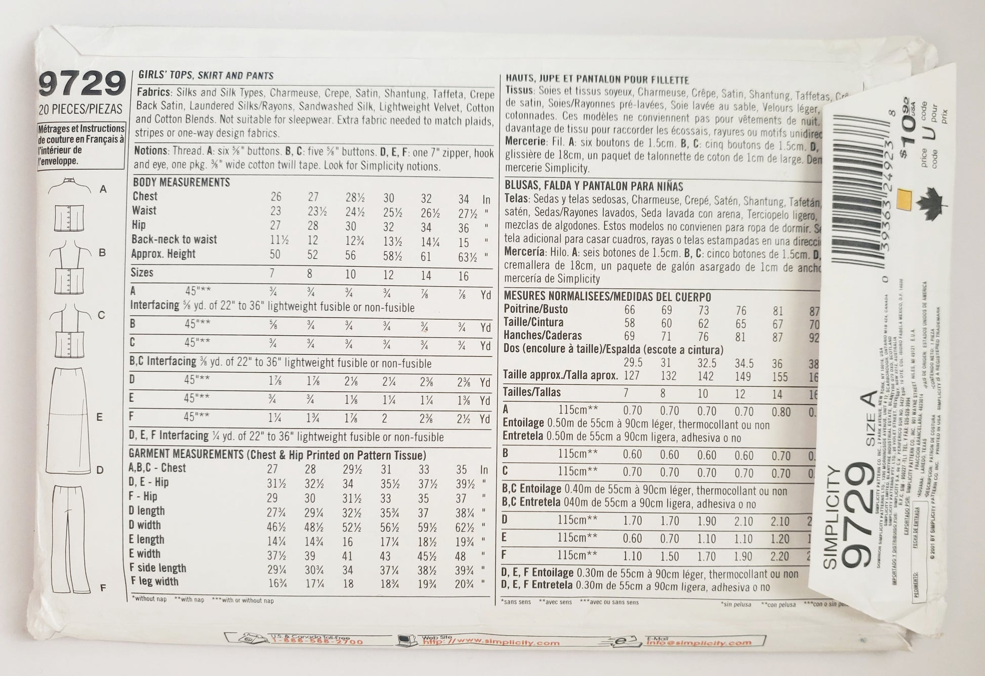 SIMPLICITY Sewing Pattern 9729, Kids, Teens, Girls, Tops, Skirts, Pants, Dance Outfit, Performance Outfit, Special Occasion, Size 7-16