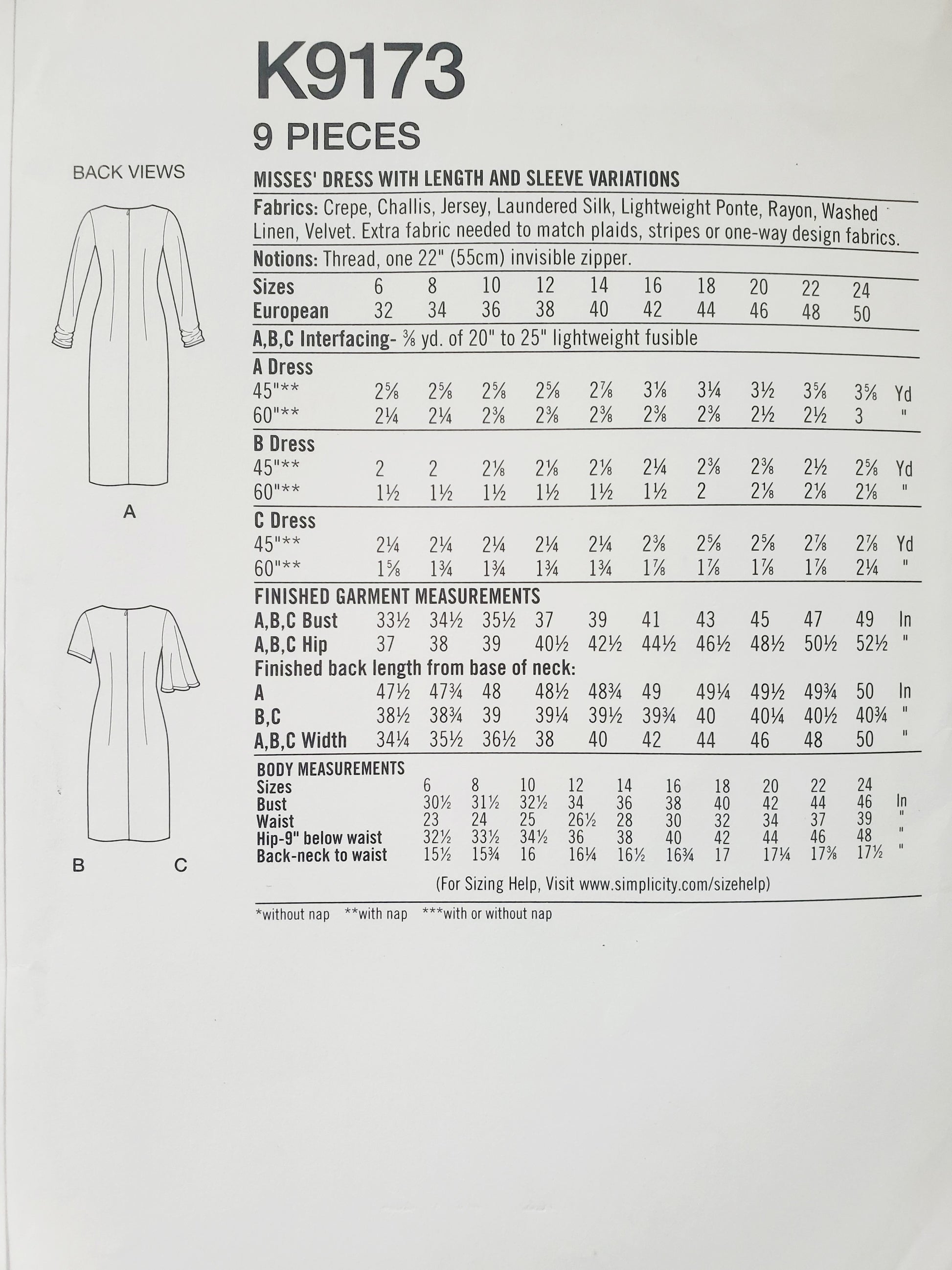 | Brand | Simplicity K9173 |