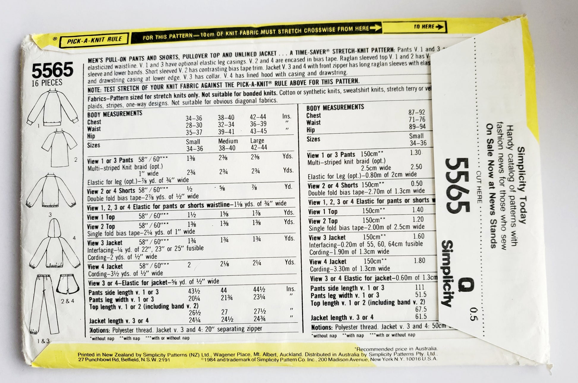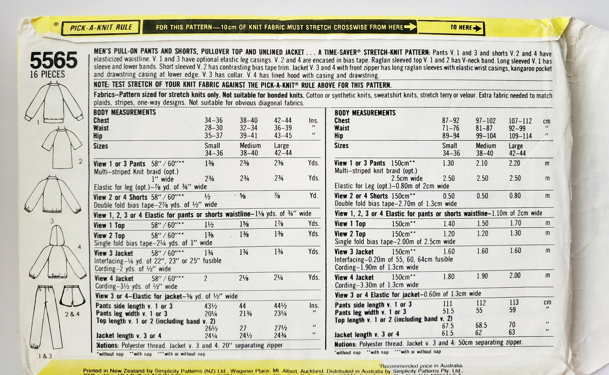 SIMPLICITY Sewing Pattern 5565, Mens, Pants, Shorts, Top, Jacket, Trackpants, Size 38-40