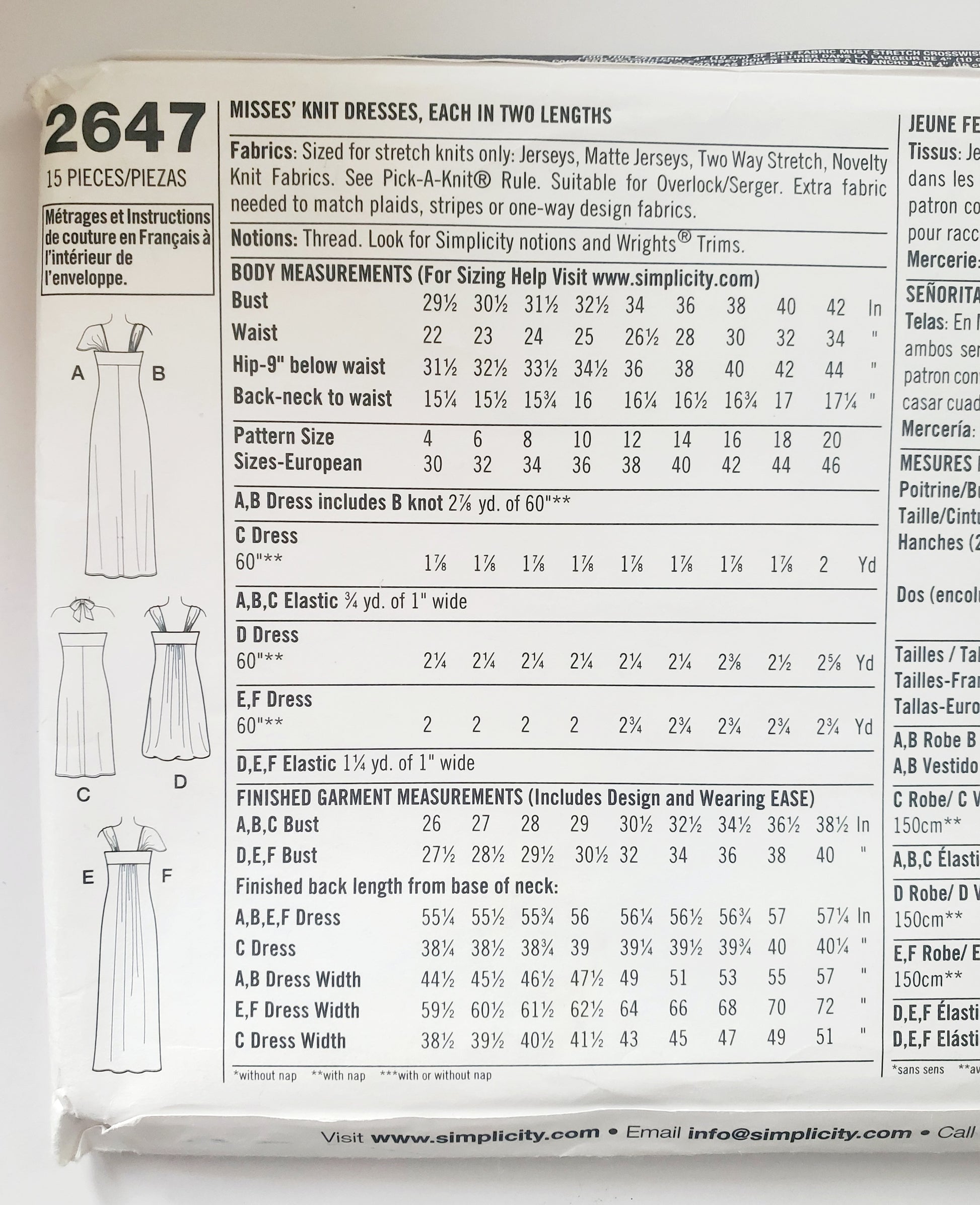 SIMPLICITY Sewing Pattern 2647, Designer Dress, Evening Dress, Day Dress, Size 4-12