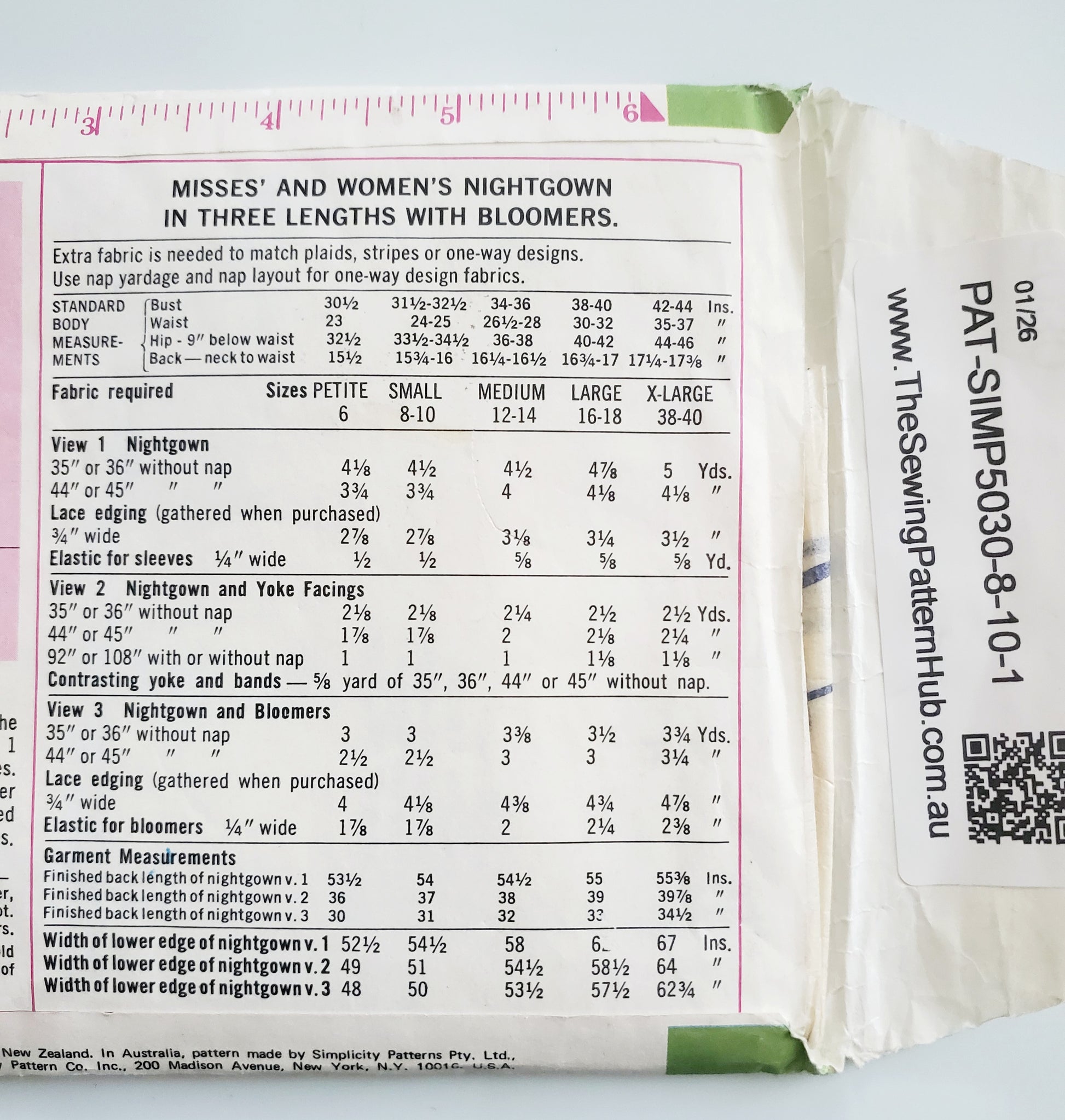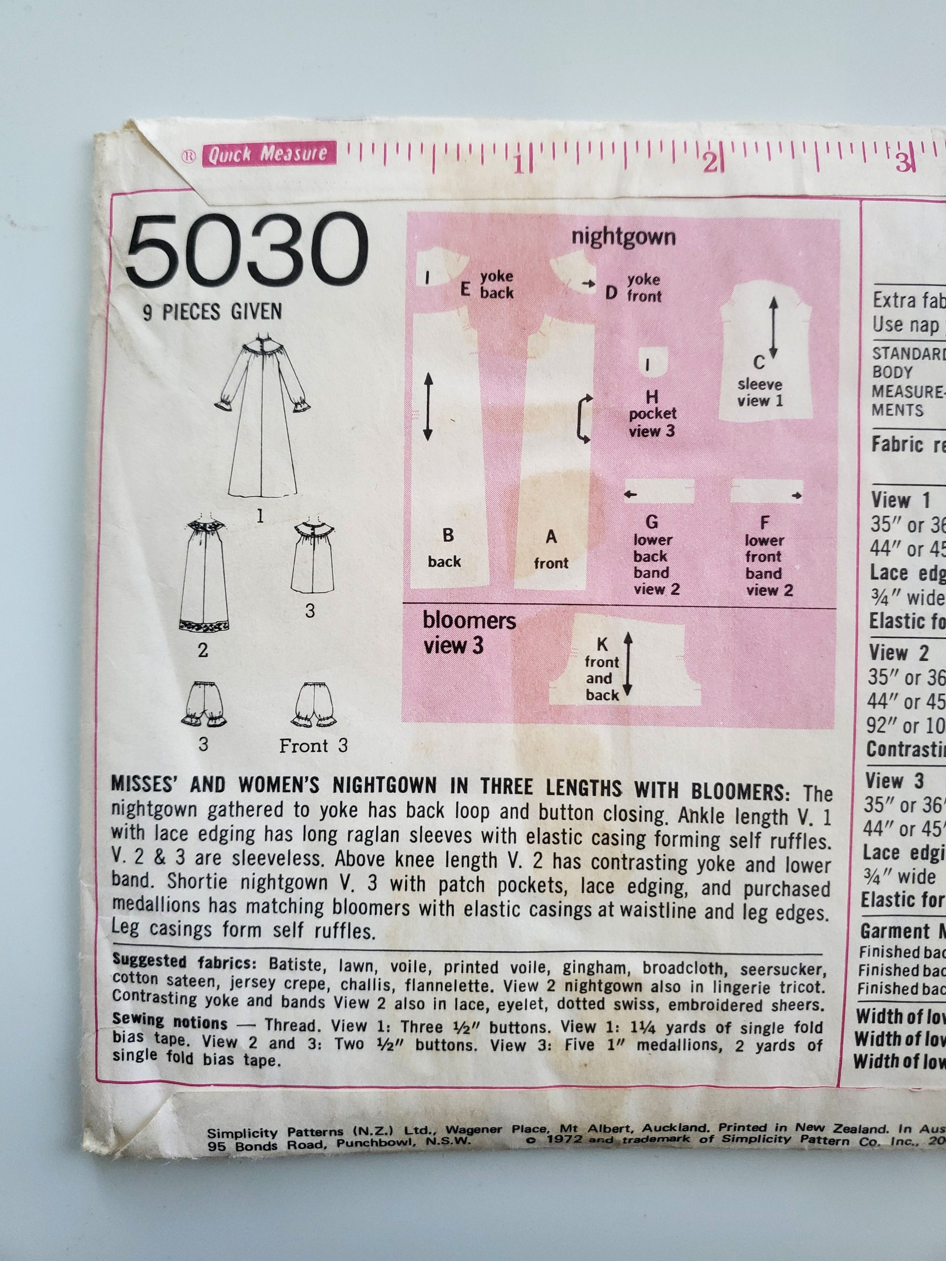 SIMPLICITY Vintage Sewing Pattern 5030, Womans, Nightgown, Bloomers, Size 8-10