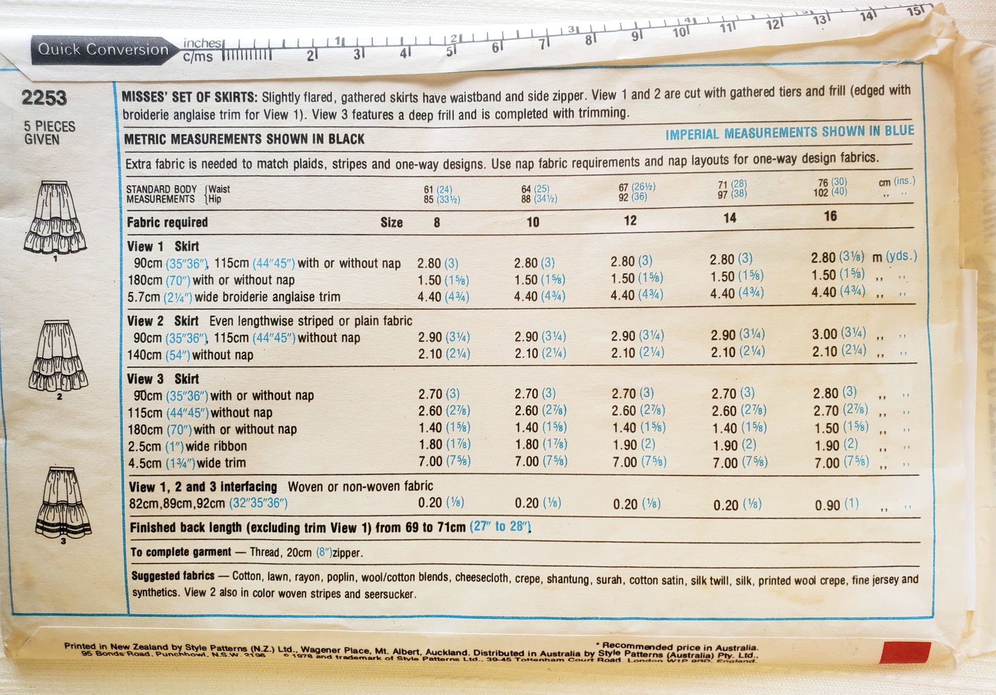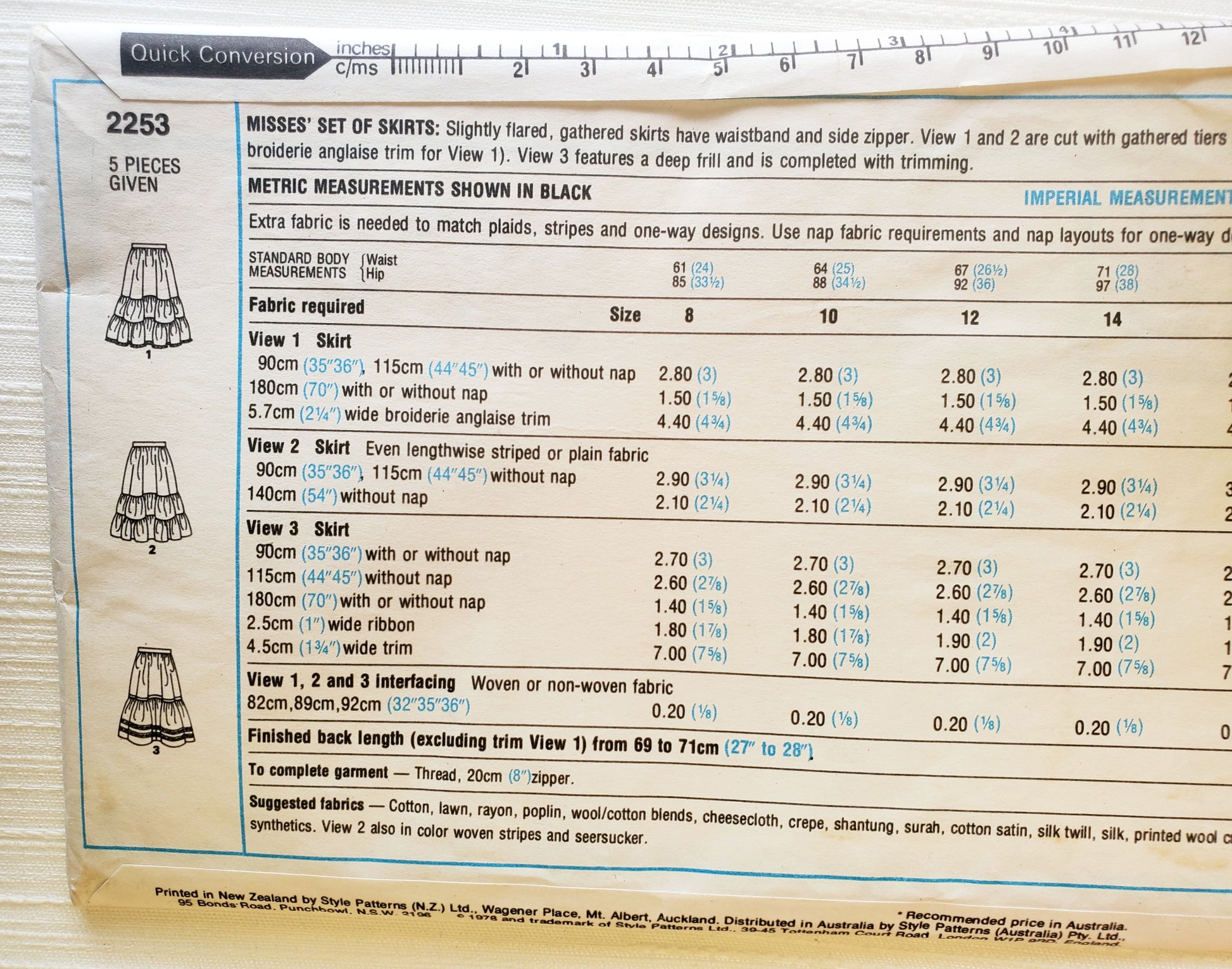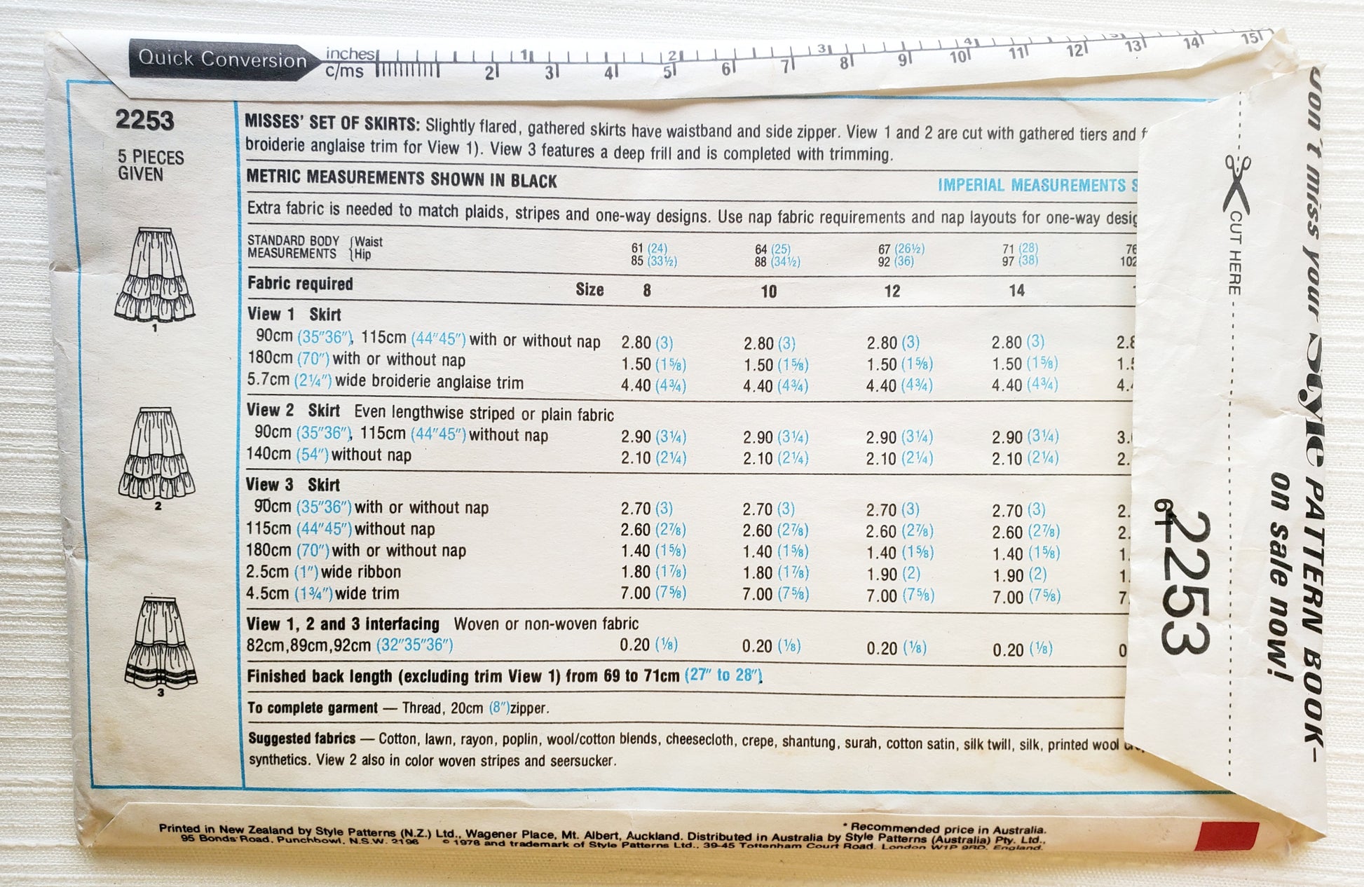 STYLE Sewing Pattern 2253, Skirts, Tiered Skirts, Frill, Set of Skirts, Size 8