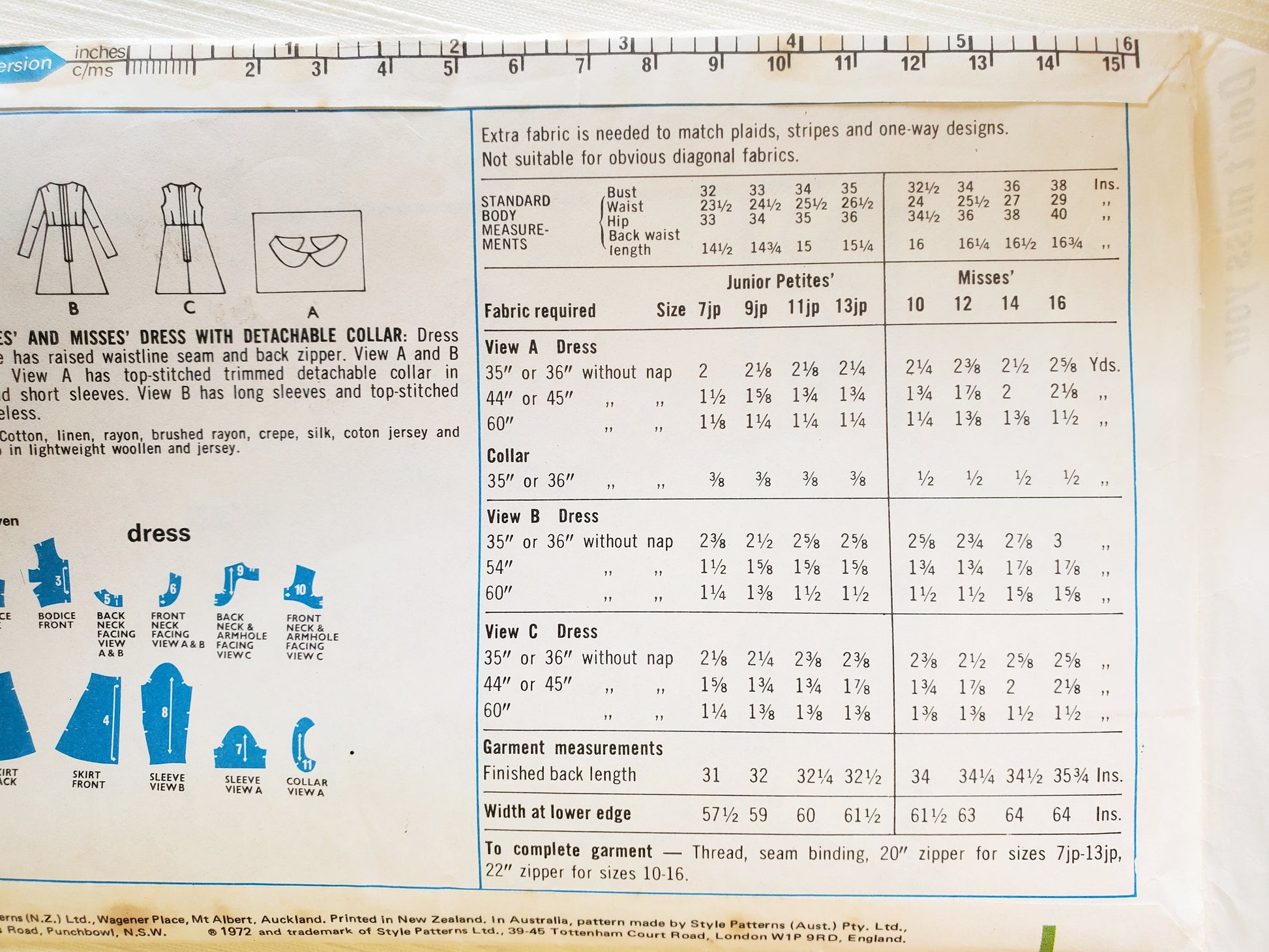 To complete garment — Thread, seam binding, 20" zipper for sizes 7jp–13jp, 22" zipper for sizes 10–16
