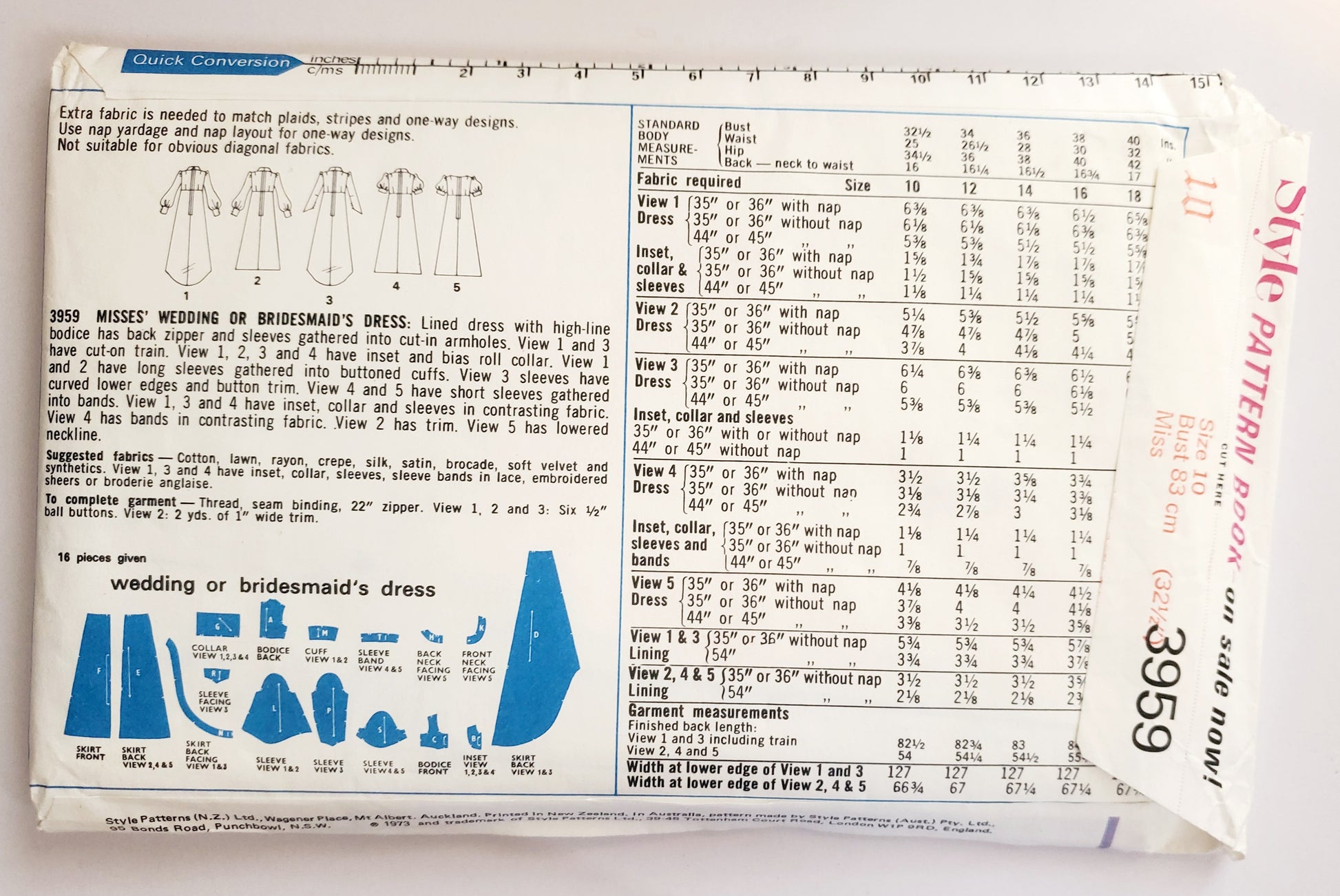 STYLE Sewing Pattern 3959, Wedding Dress, Bridesmaid Dress, Vintage Bridal Dress, Size 10