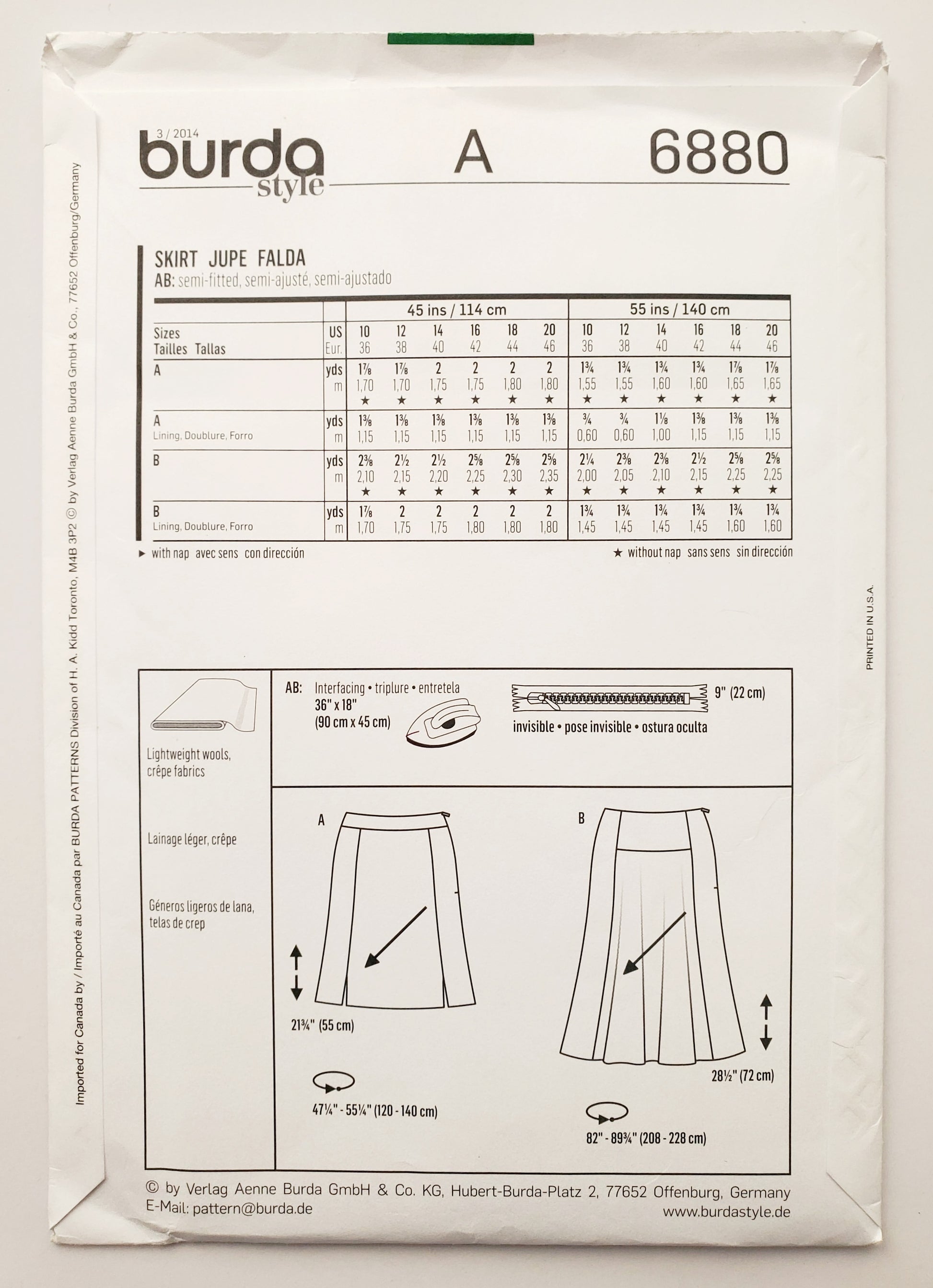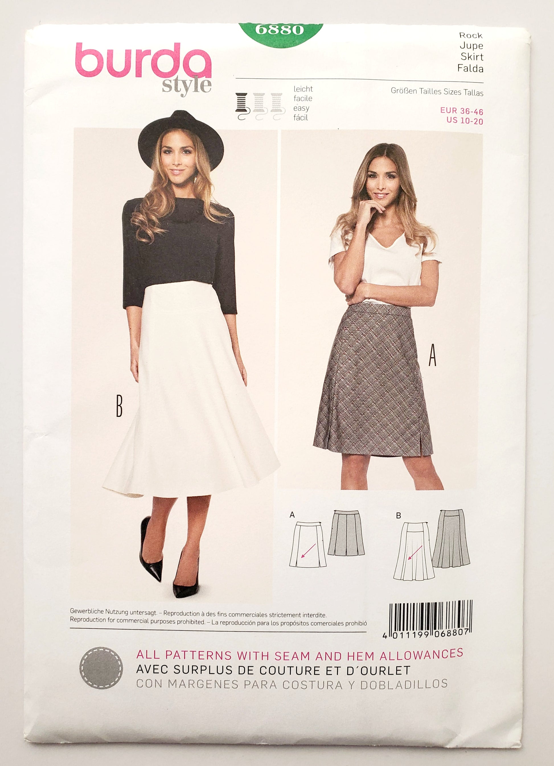 BURDA STYLE, Sewing Pattern 6880, Skirt with Small Slits, Flared Skirt, Size 10-20