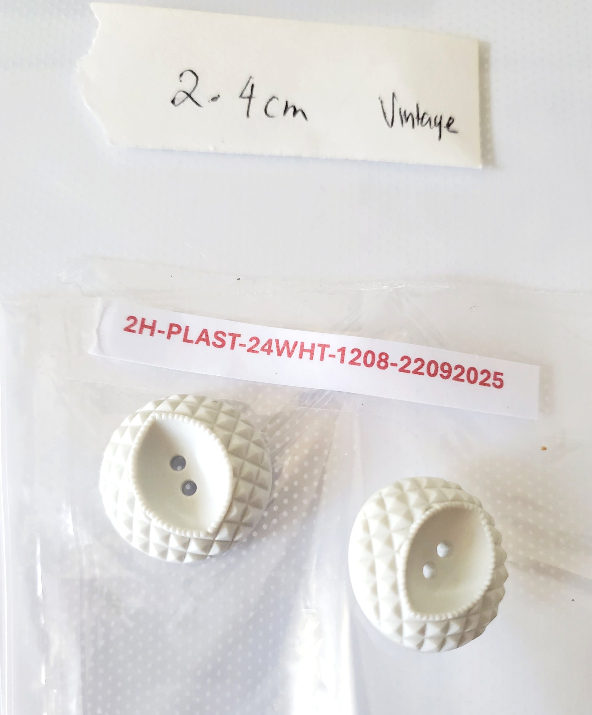 White Round 2-Holed Buttons, Size 24mm, 2.4cm, Plastic, QTY 2