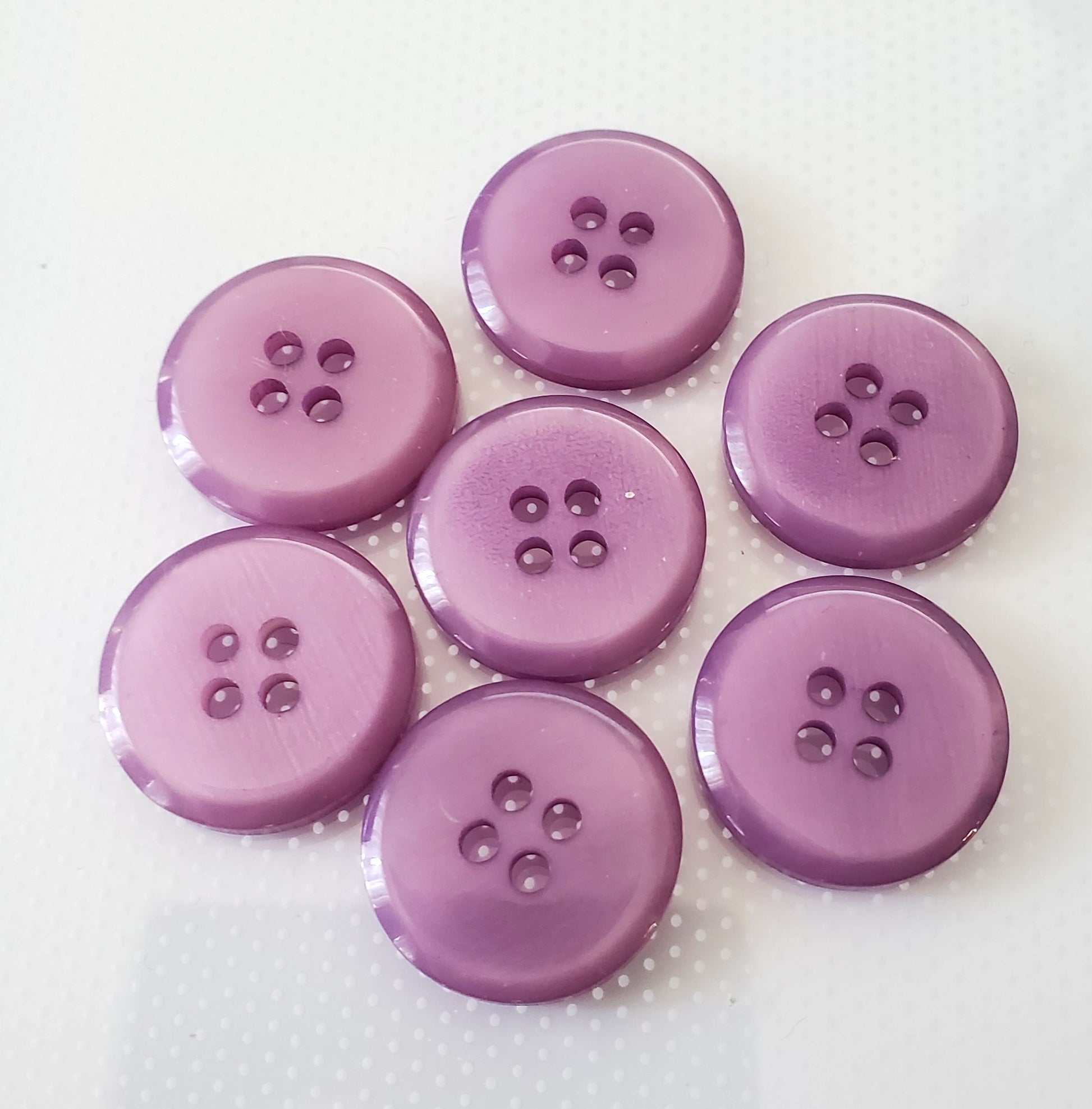 Purple Round 4-Holed Buttons, Raised Rim, Size 19mm, 1.9cm, Plastic, QTY 7