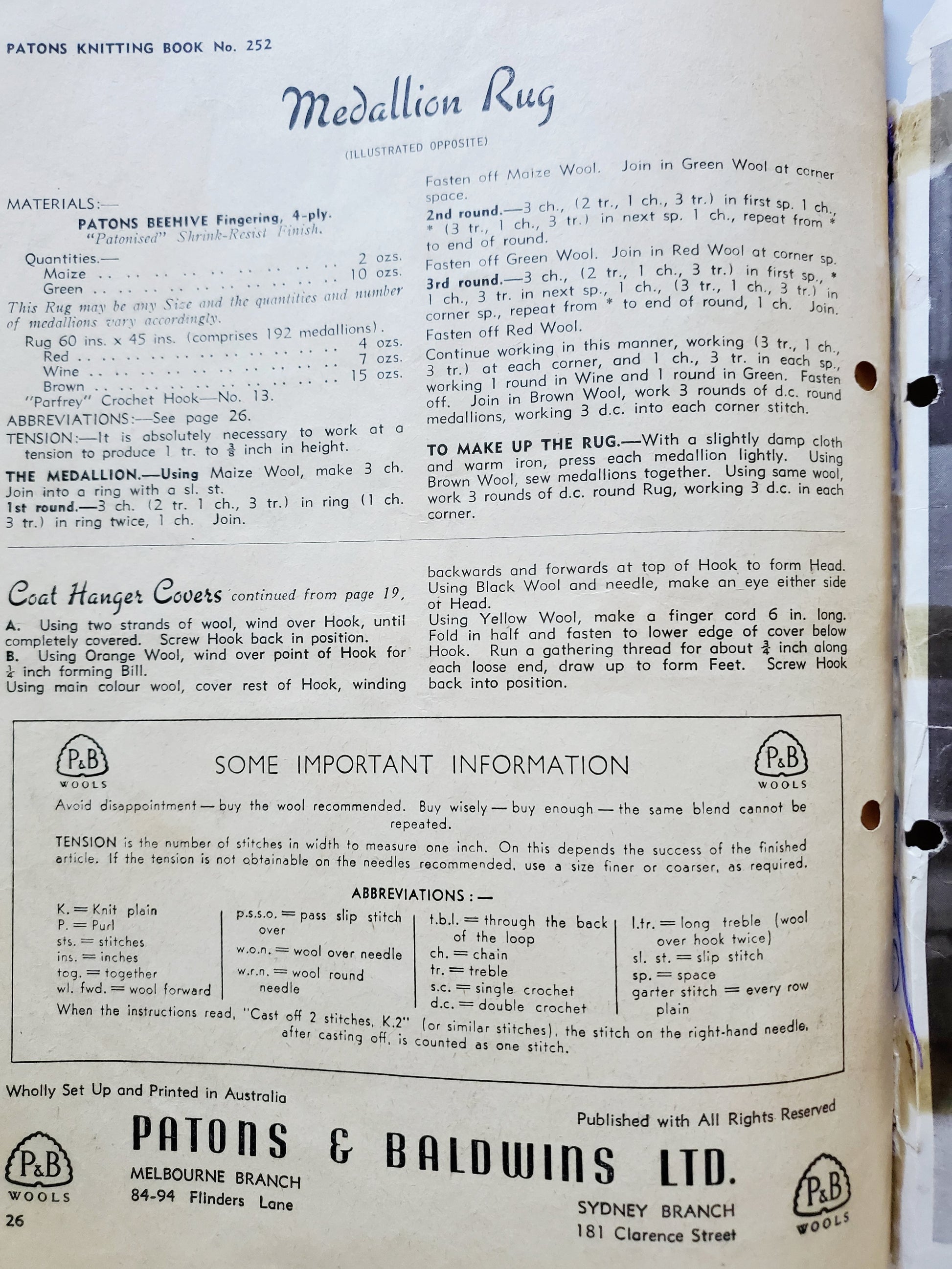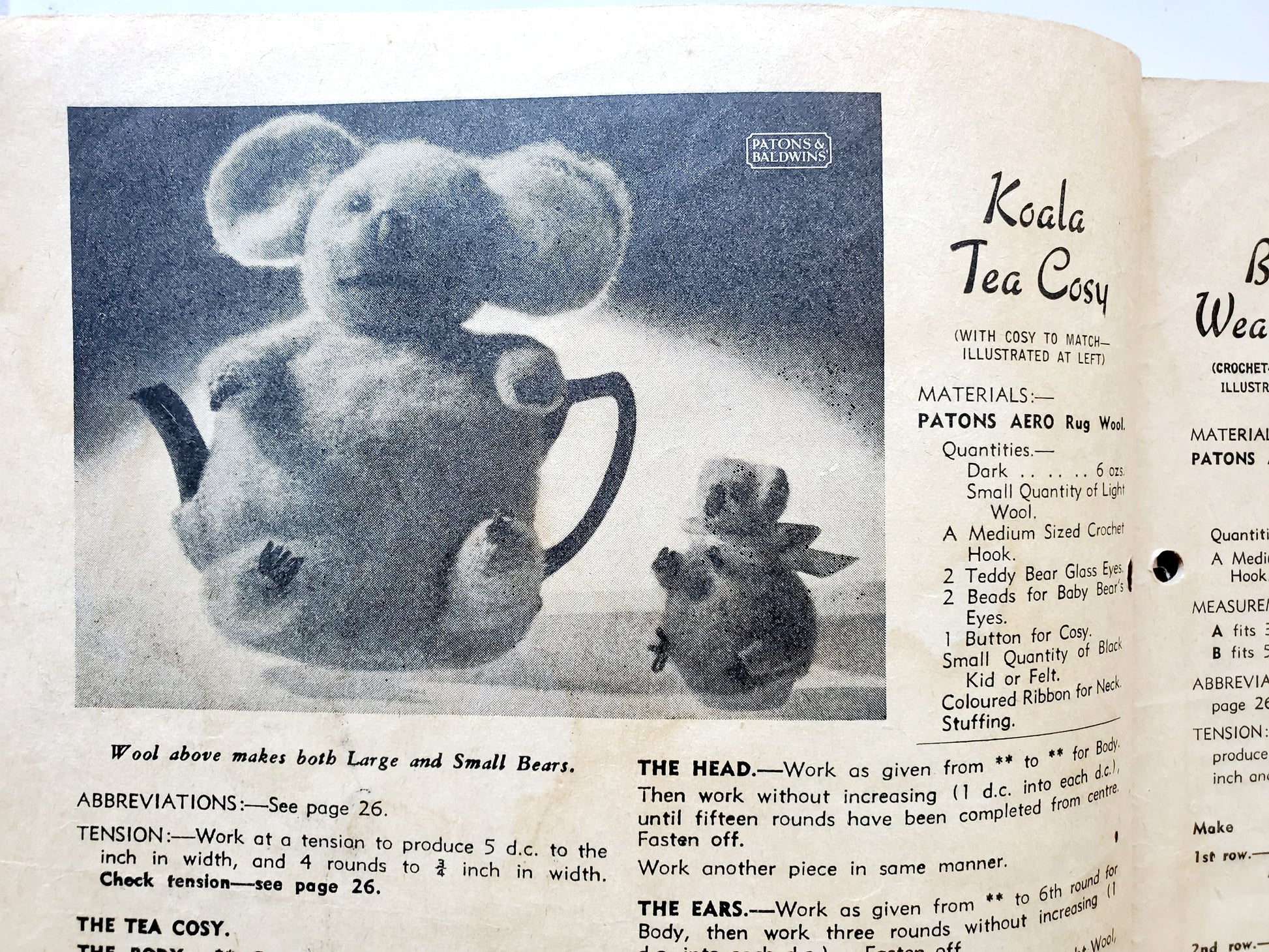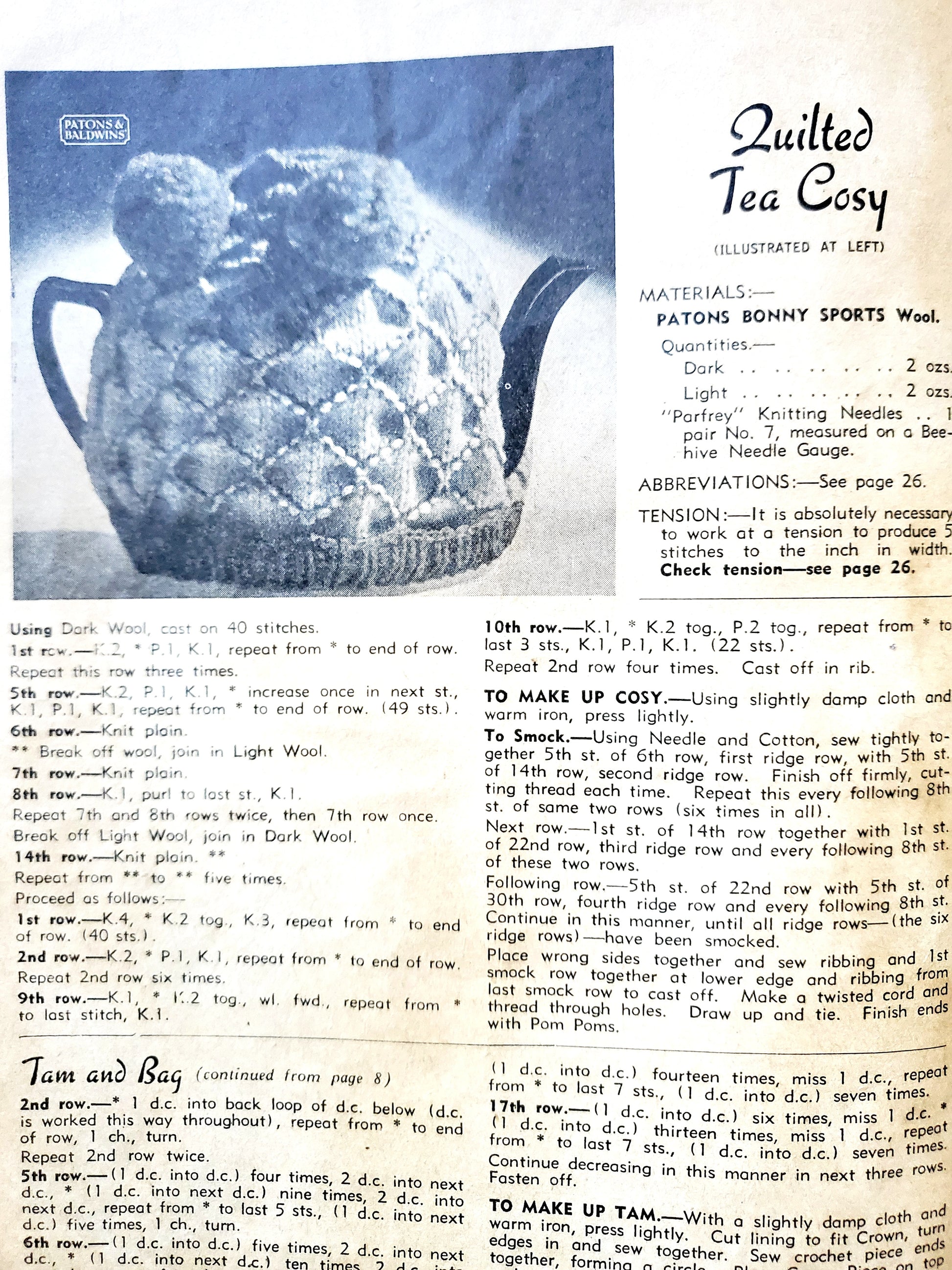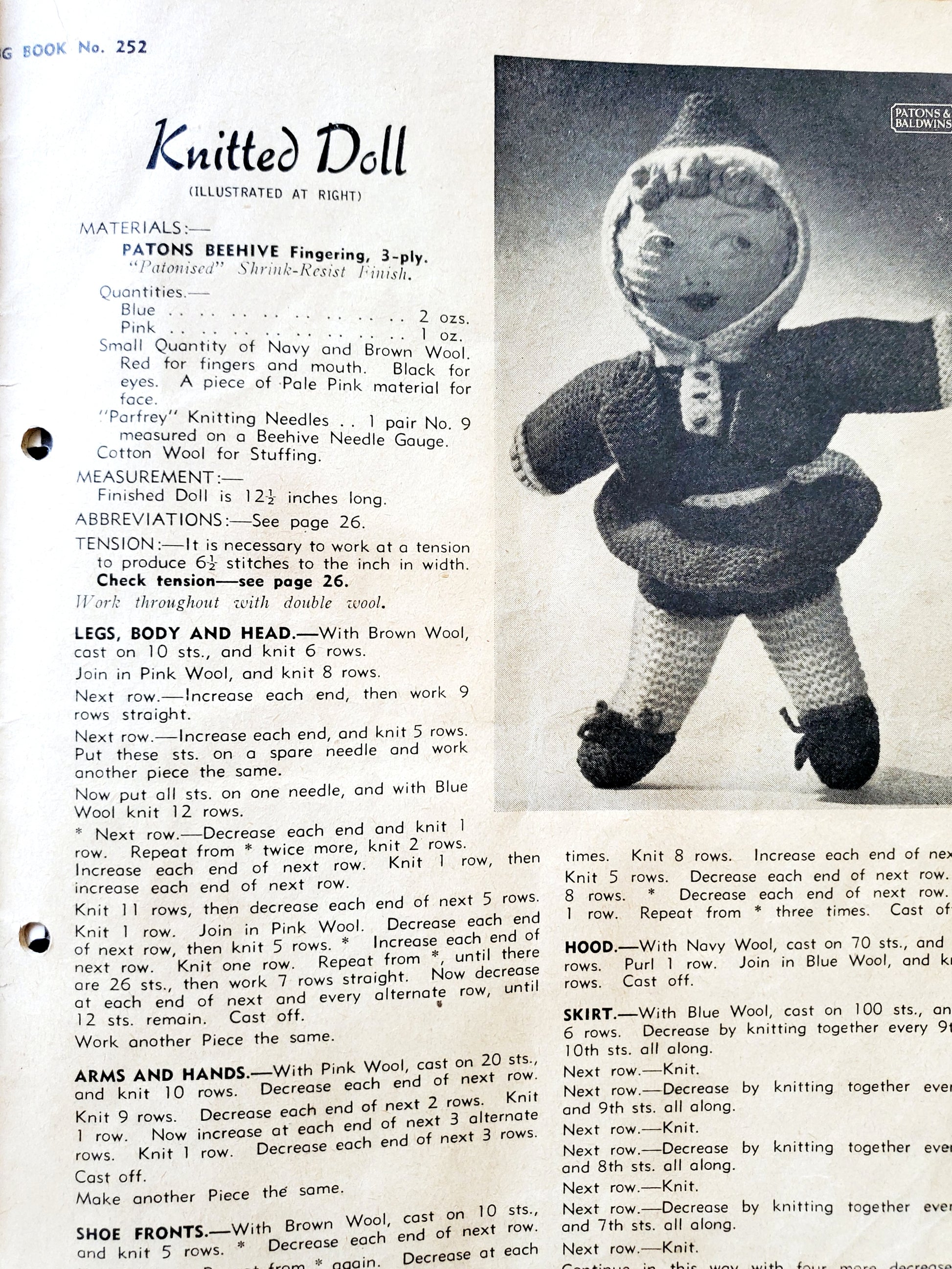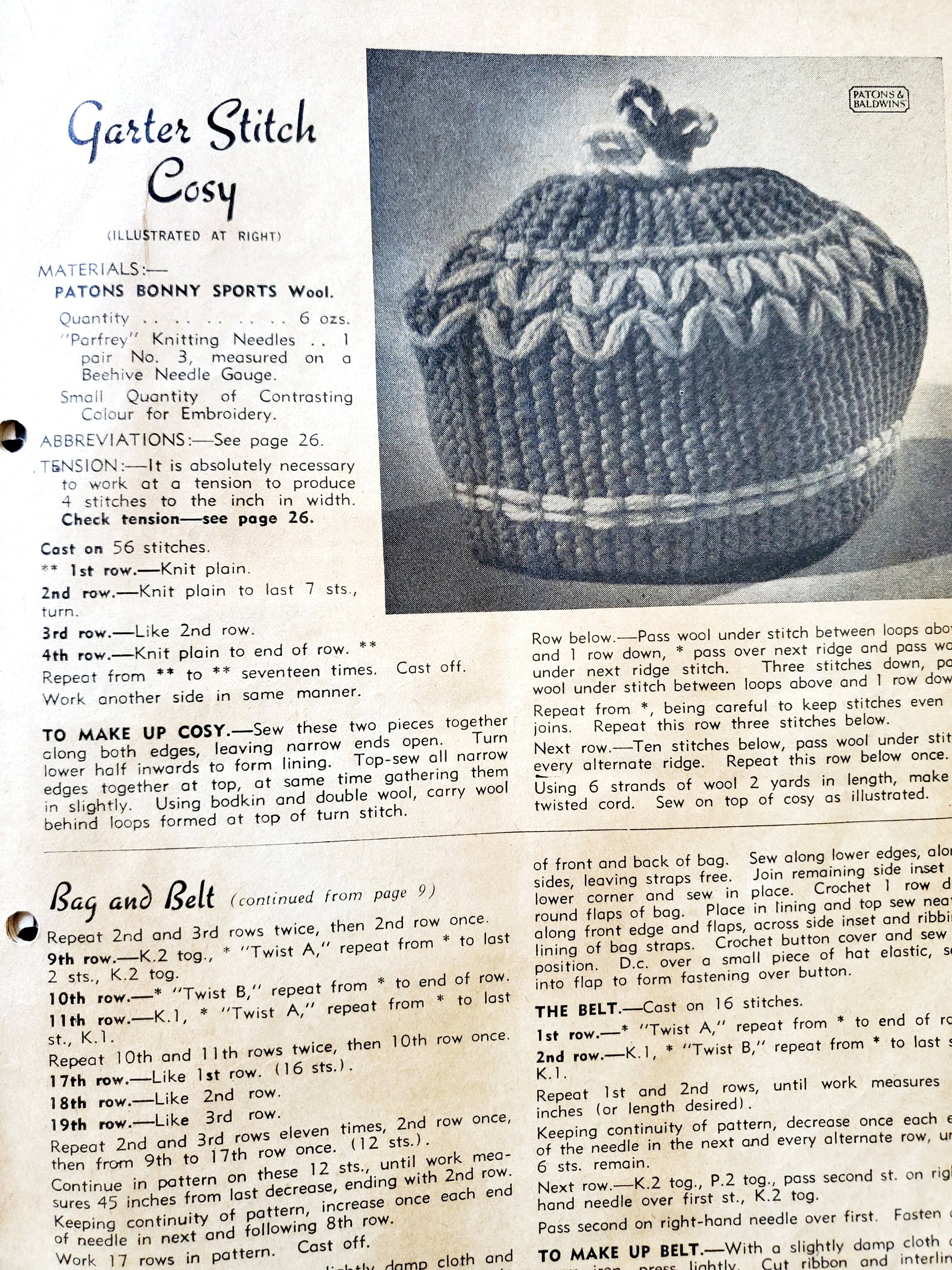 Vintage 1950's Patons Knitting Book No. 252. Tea Cozy Lampshade Bag Toy Rugs
