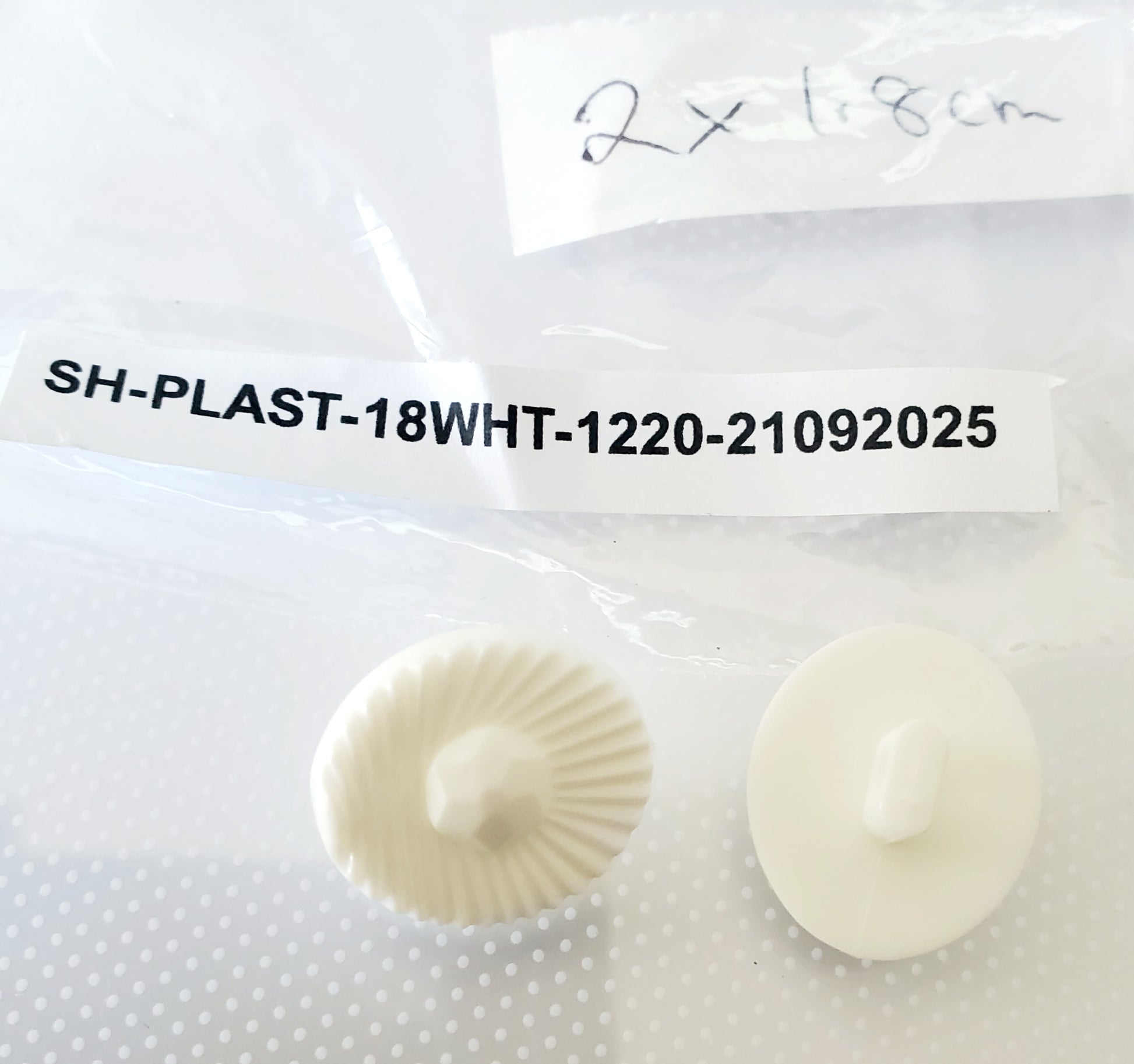 Shank Buttons, White, Oval, Size 1.8cm, 18mm, Vintage Plastic, QTY 2