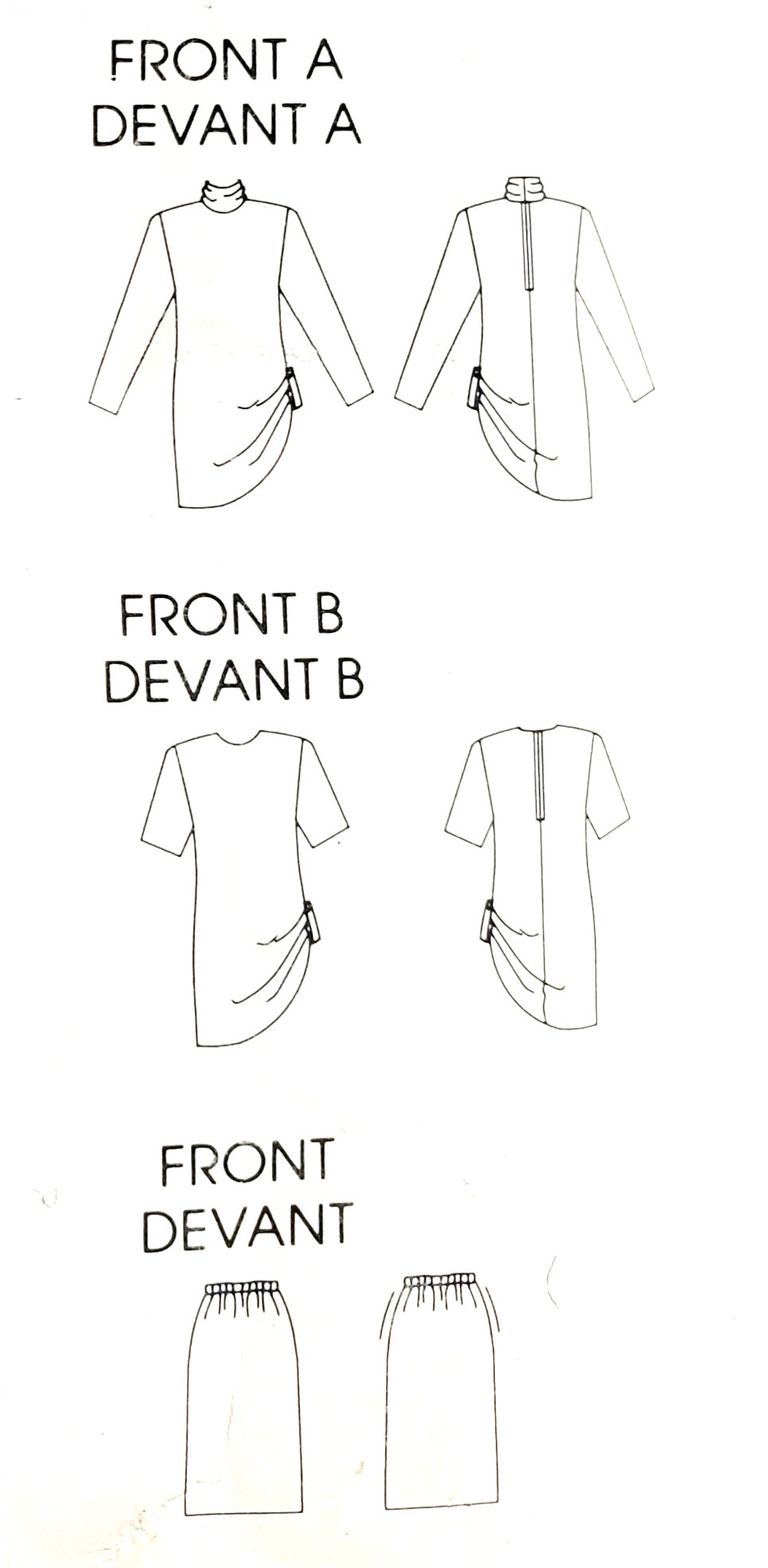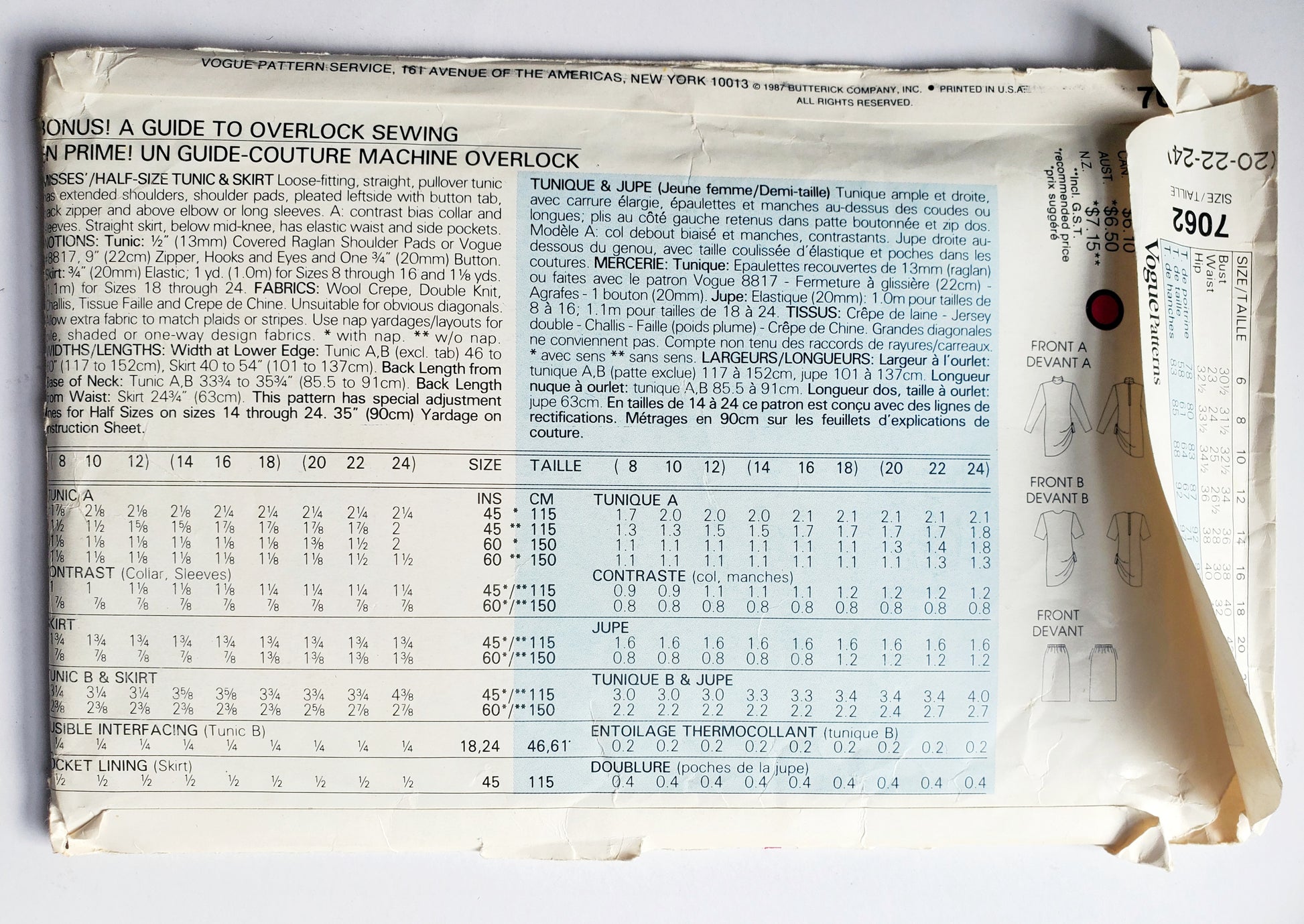 NOTIONS: Tunic: ½" (1.3cm) Covered Raglan Shoulder Pads or Vogue #8817; 22" (56cm) Zipper,Hooks and Eyes and One ¾" (20mm) Button. Skirt: 1" (2.5cm) Elastic; Optional: Purchased Belt.