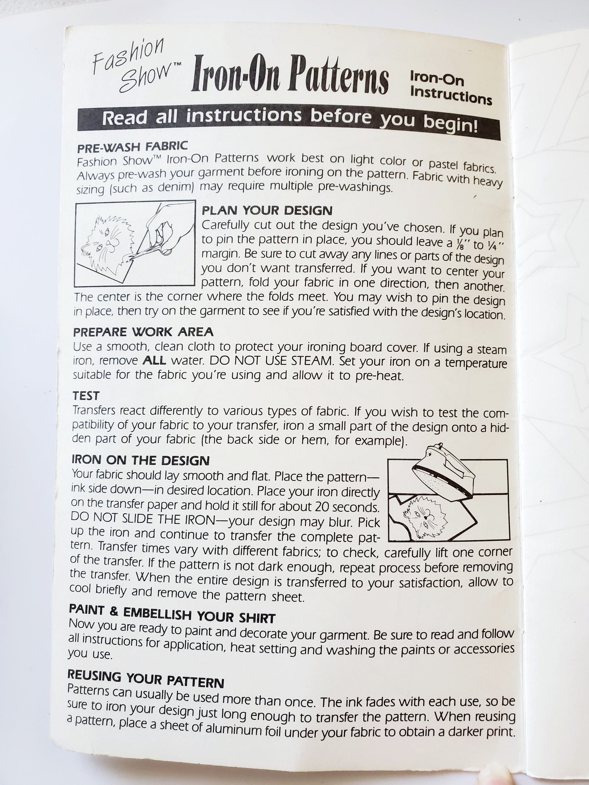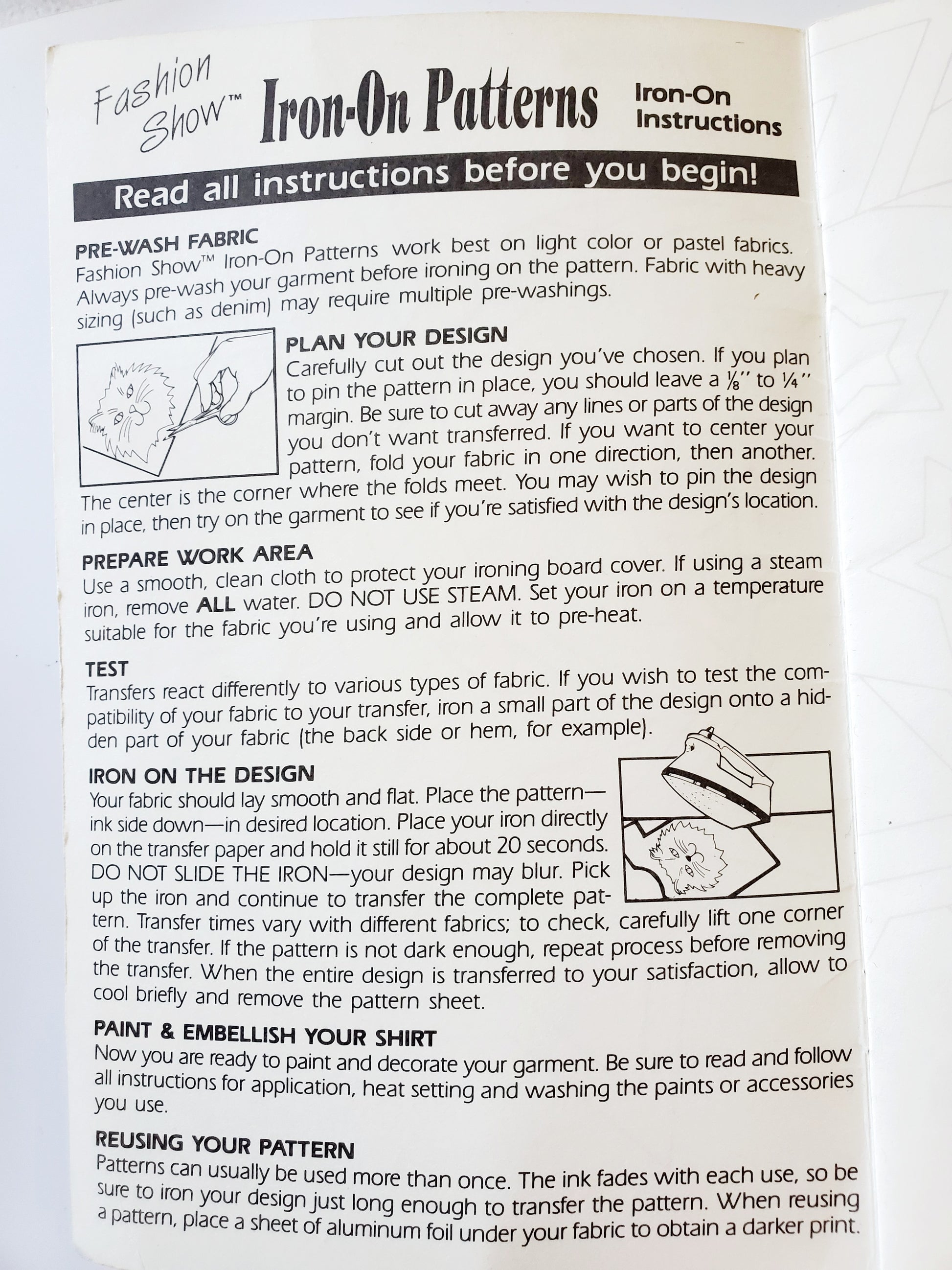 "Decorating Your Fashion Show™ Iron-On Pattern™ You can create fabulous designer-look clothing using Fashion Show™ Iron-On Patterns and your own creativity. Choose your own brush-on or dimensional paint colors, jewels, ribbon, lace, or sequins. There are so many wonderful ways to personalize and decorate your pattern!"