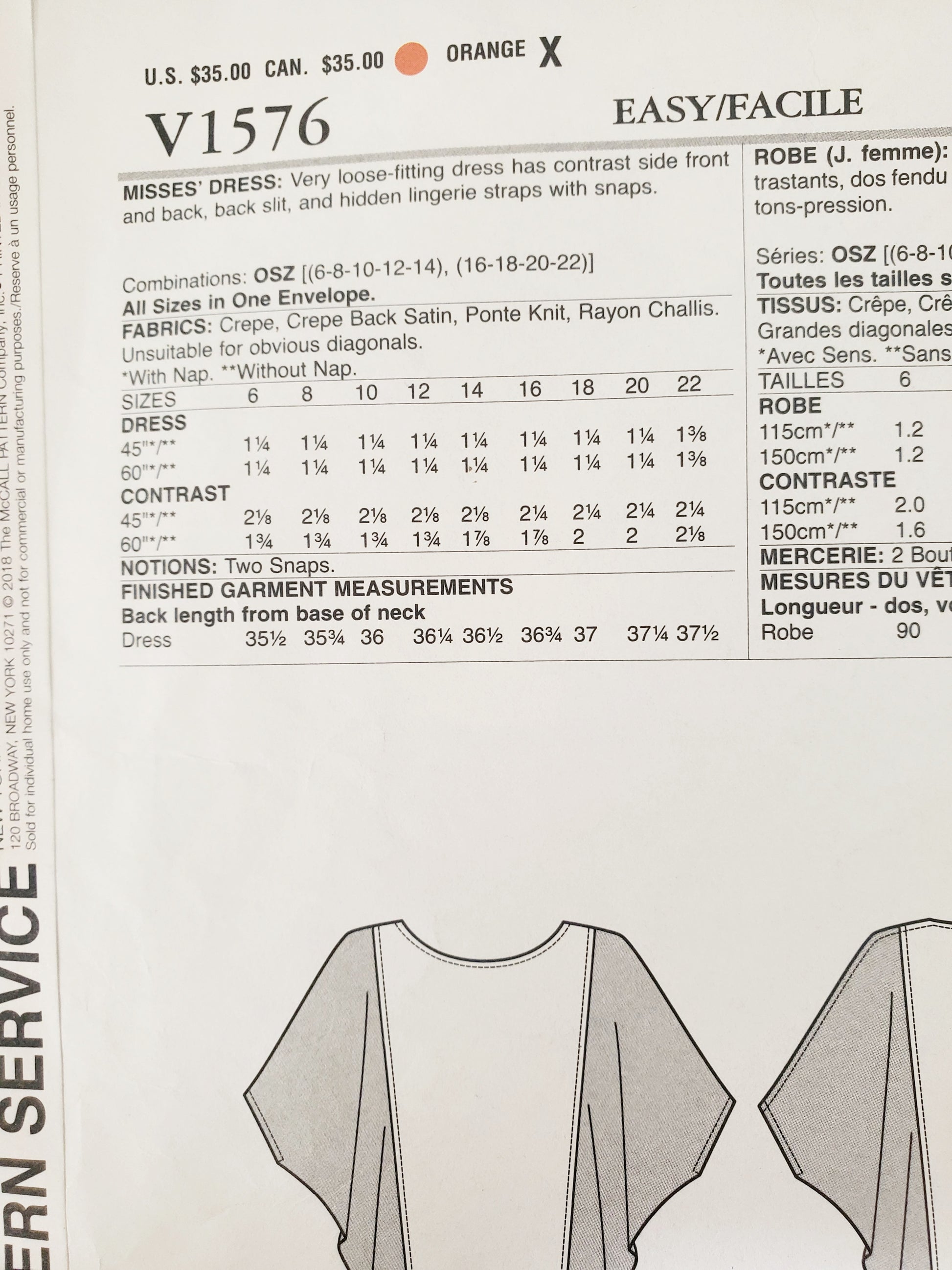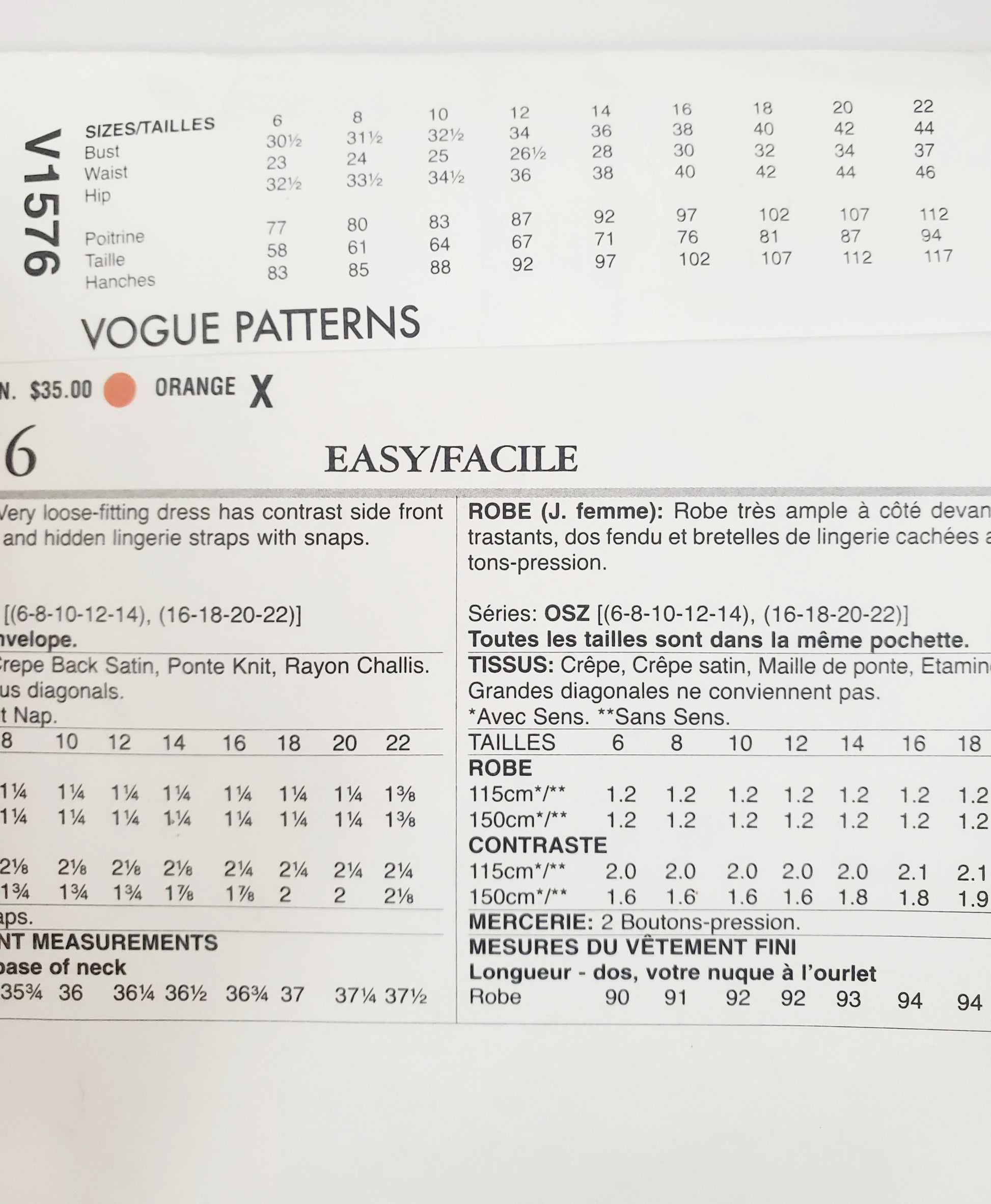 VOGUE PATTERNS, Sewing Pattern V1576, TOM & LINDA PLATT, American Designer, Dress, Loose Fitting Dress, Size 6-22