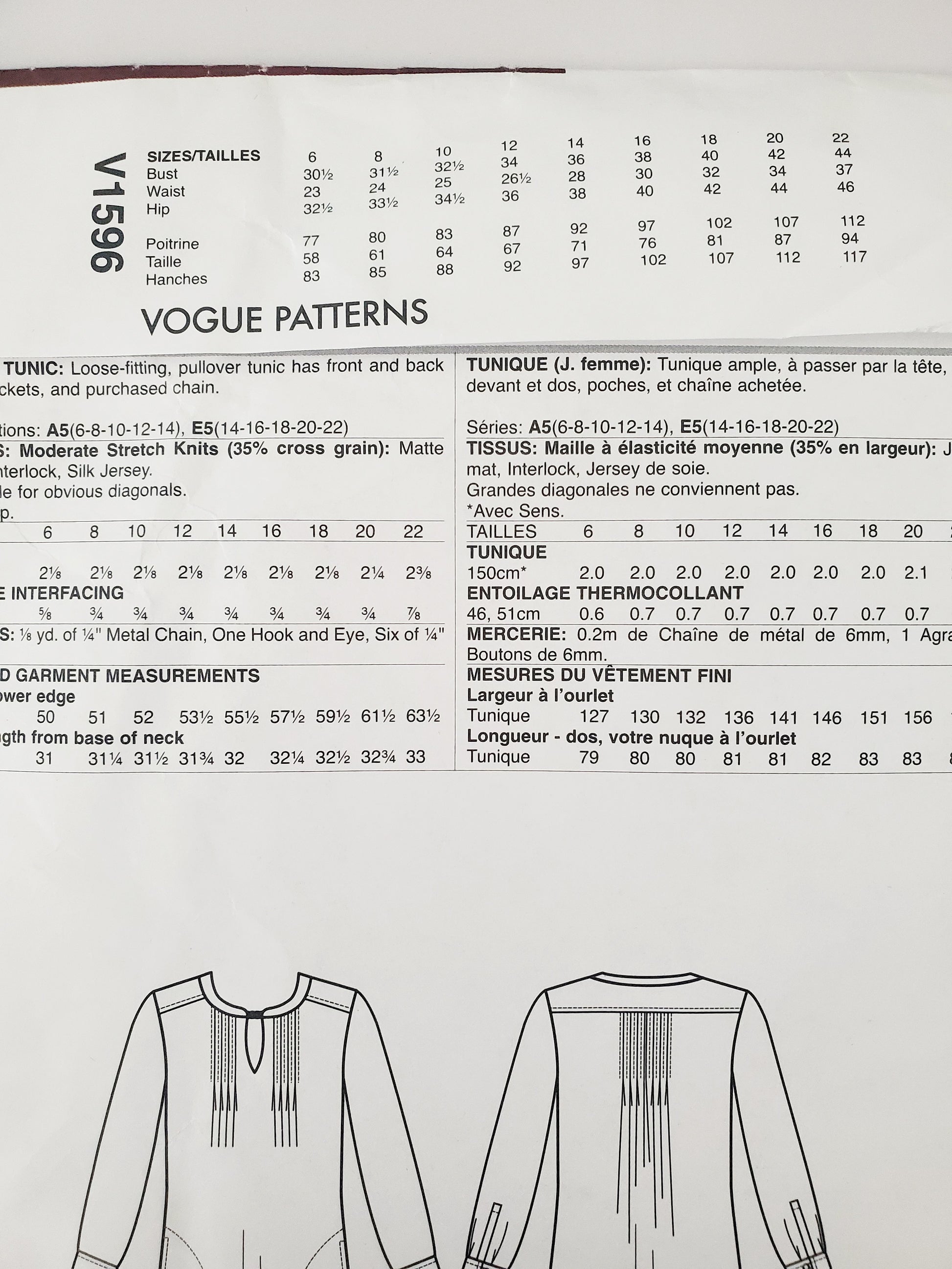 VOGUE PATTERNS, Sewing Pattern V1596, TRACY REESE, NEW YORK, AMERICAN DESIGNER, Tunic, Top, Size 6-14