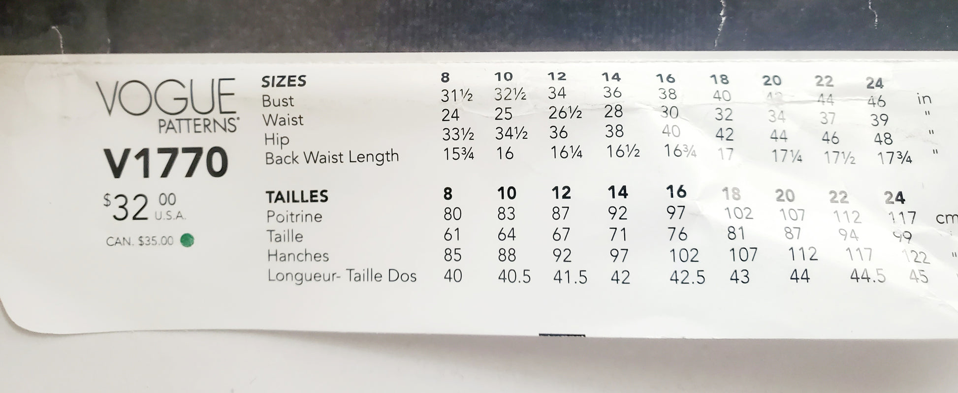 | Brand | Vogue V1770 |