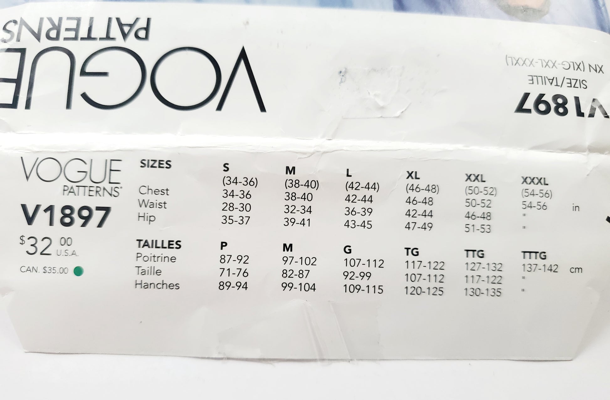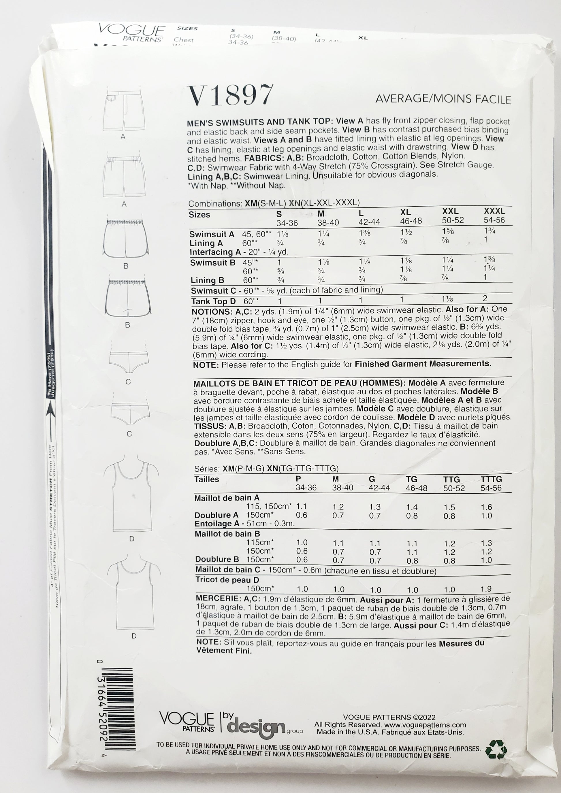 VOGUE Sewing Pattern V1897 Men's Swimsuit, Bathers, Tank Top, Size XLG, XXL, XXXL