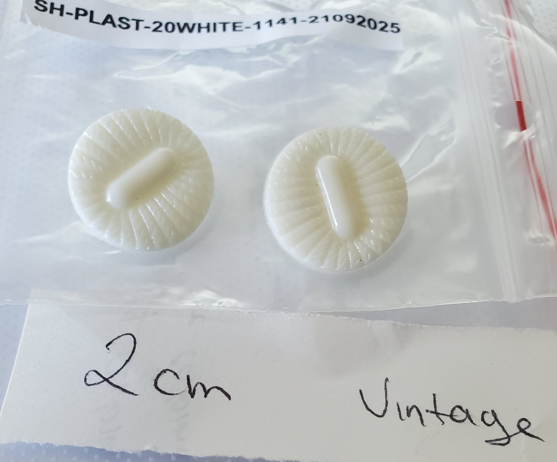 White, Round, Shank Buttons with Raised Design, Size 20mm 2cm Plastic QTY 2